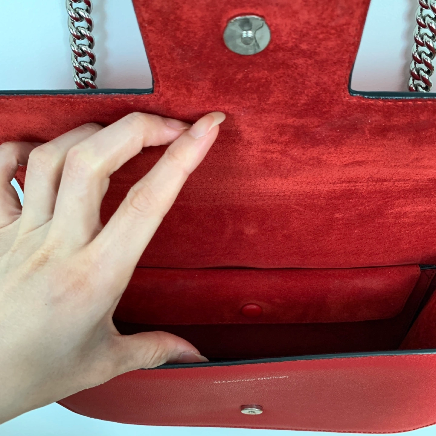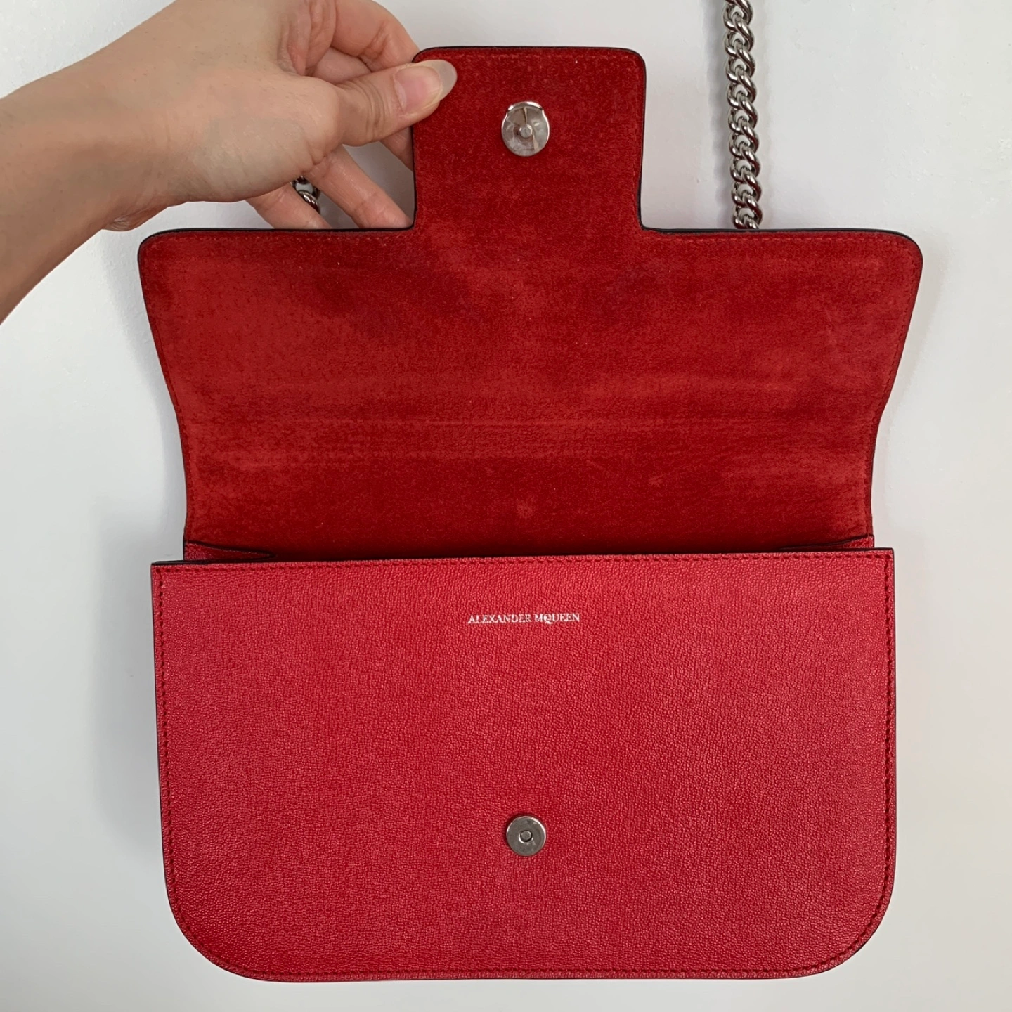 Alexander McQueen Red Chain Leather Shoulder Bag