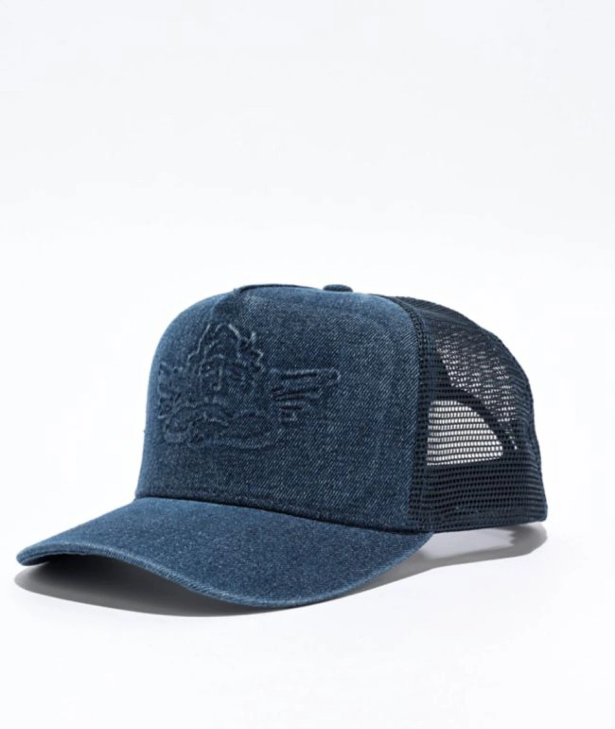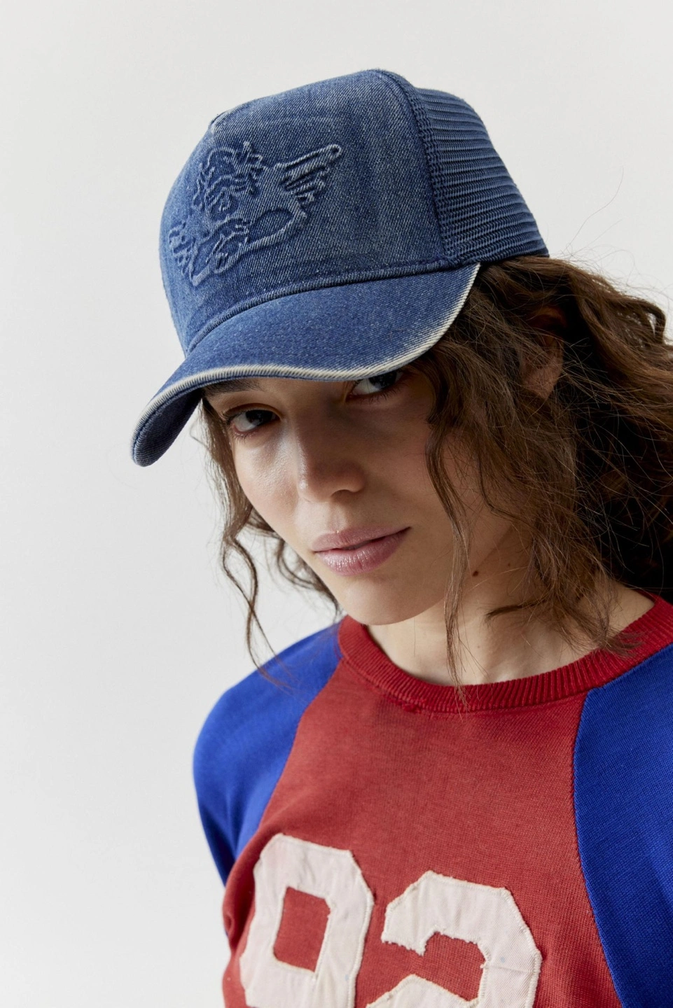 The highly coveted Boys Lie Blue Denim Trucker Hat with a mesh back. Features an embroidered wondering cherub logo on the front, same denim tone. Bought from Urban Outfitters and never worn. Mostly bought because it looked too good not to 🧢
