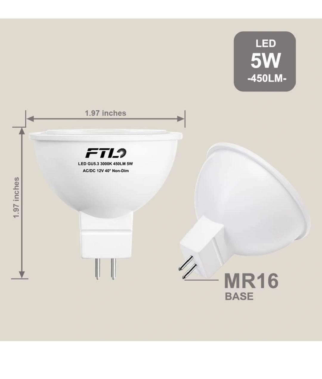 MR16 LED Bulb,12v 50W Equivalent Halogen Replacement Bulbs 3000K Warm White GU5.3 Bipin 5W 40-Degree Non Dimmable for Landscape and Track Lighting,6-Pack.