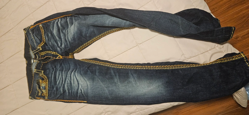 3 pairs of True Religion mens jeans. Size 31/ 32 x32 long. Distressed look.