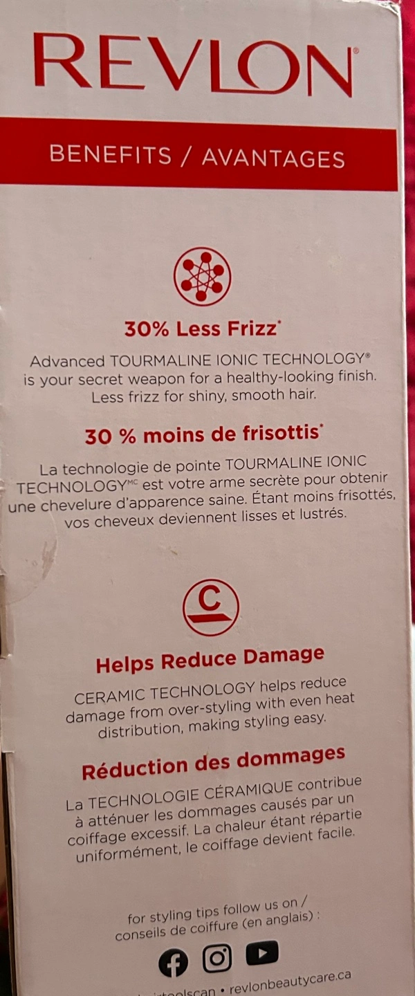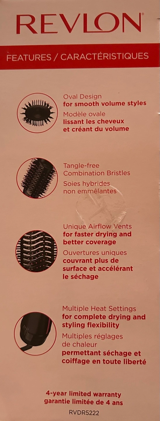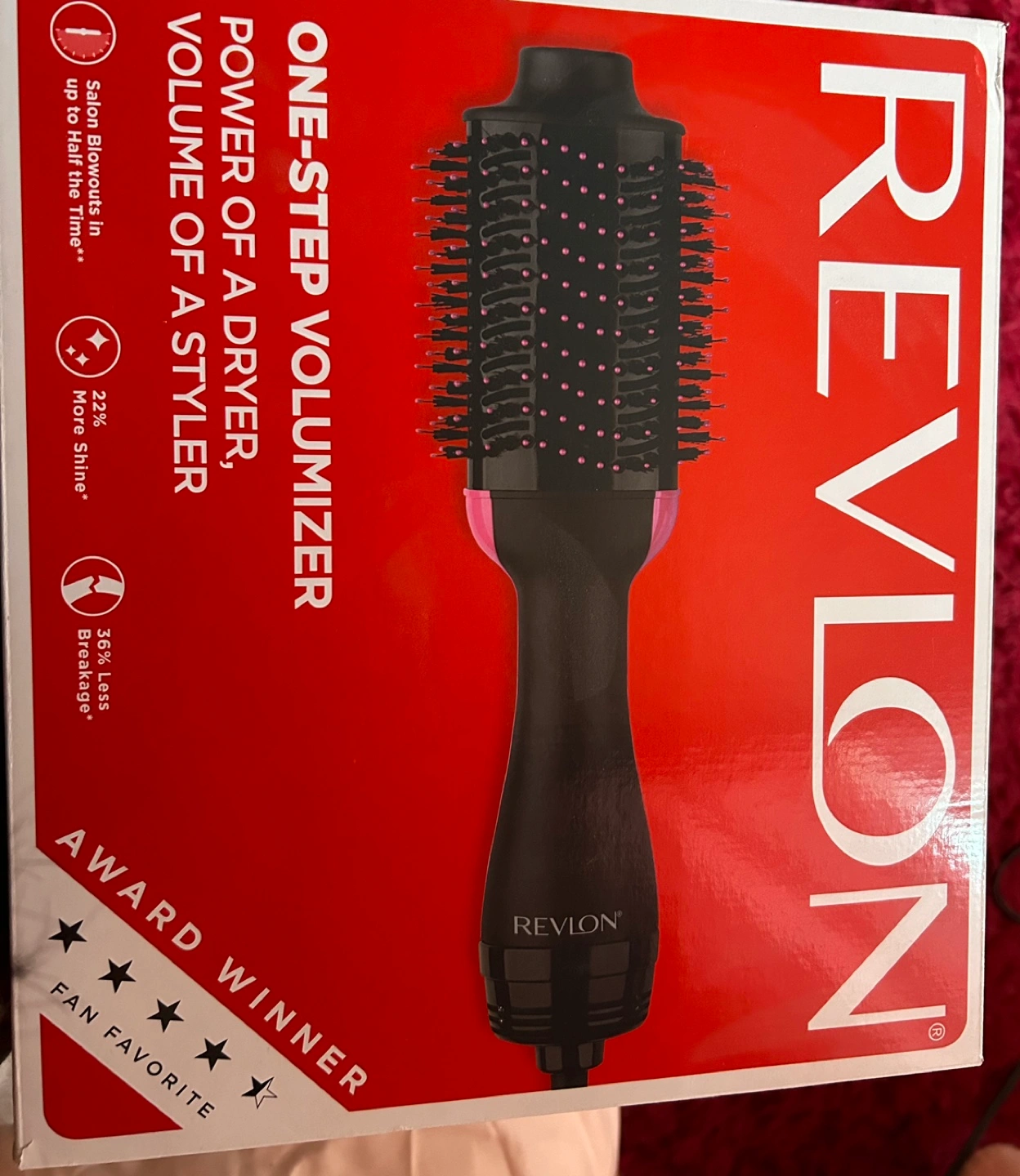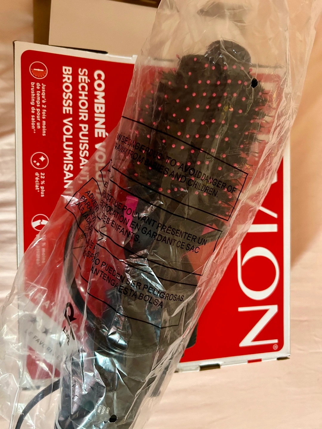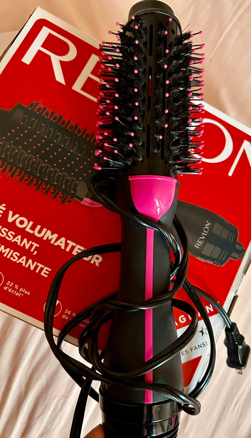 Volumizing hot air brush. Includes a long cord. With box. Works perfectly fine.