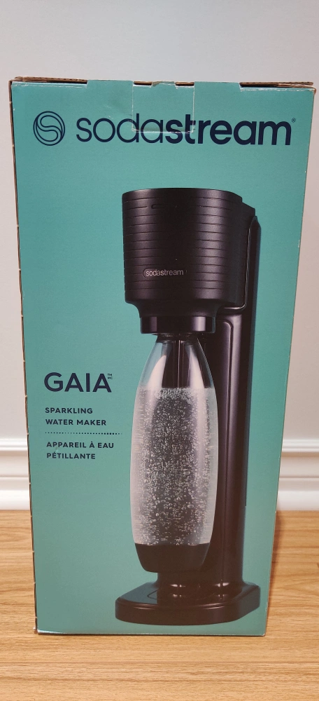 Black SodaStream Gaia Sparkling Water Maker. Includes bottle and CO2 cylinder. Brand New