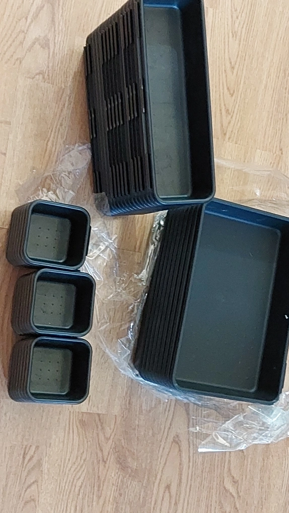 Set of 46 black plastic drawer organizers, in 3 sizes. price is 35CAD Smoke free and pet free home Kindly note all sales are final and no return or refund Please check my other listings aswell😊