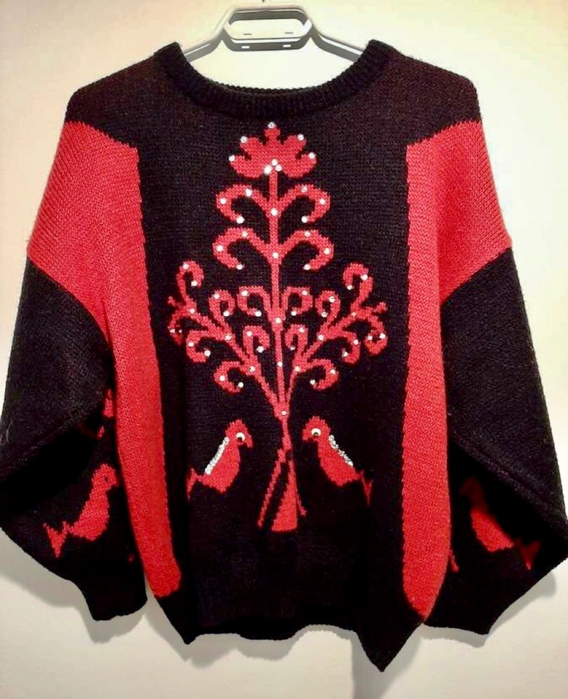 My senior mom’s vintage holiday sweater 😍 Can’t believe she’s letting this go! Beautifully knit with winged sleeves. Fits medium to large. In excellent condition. #Vintage #vintagechristmassweater