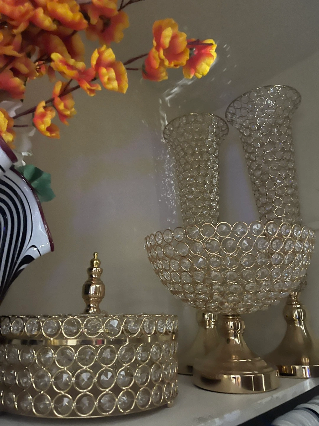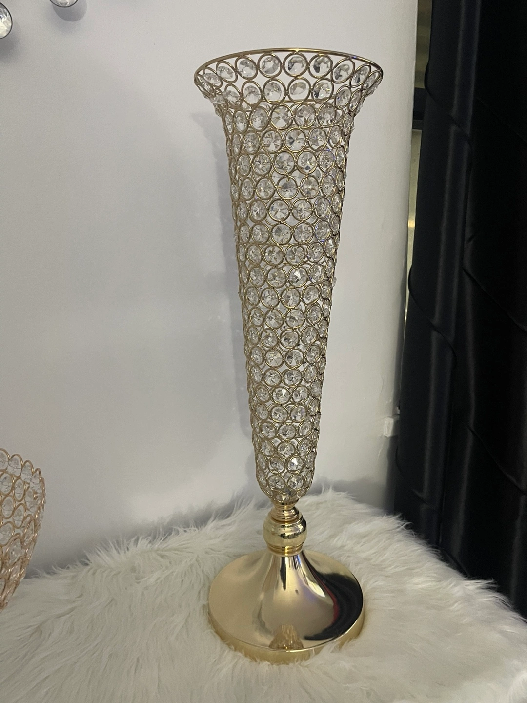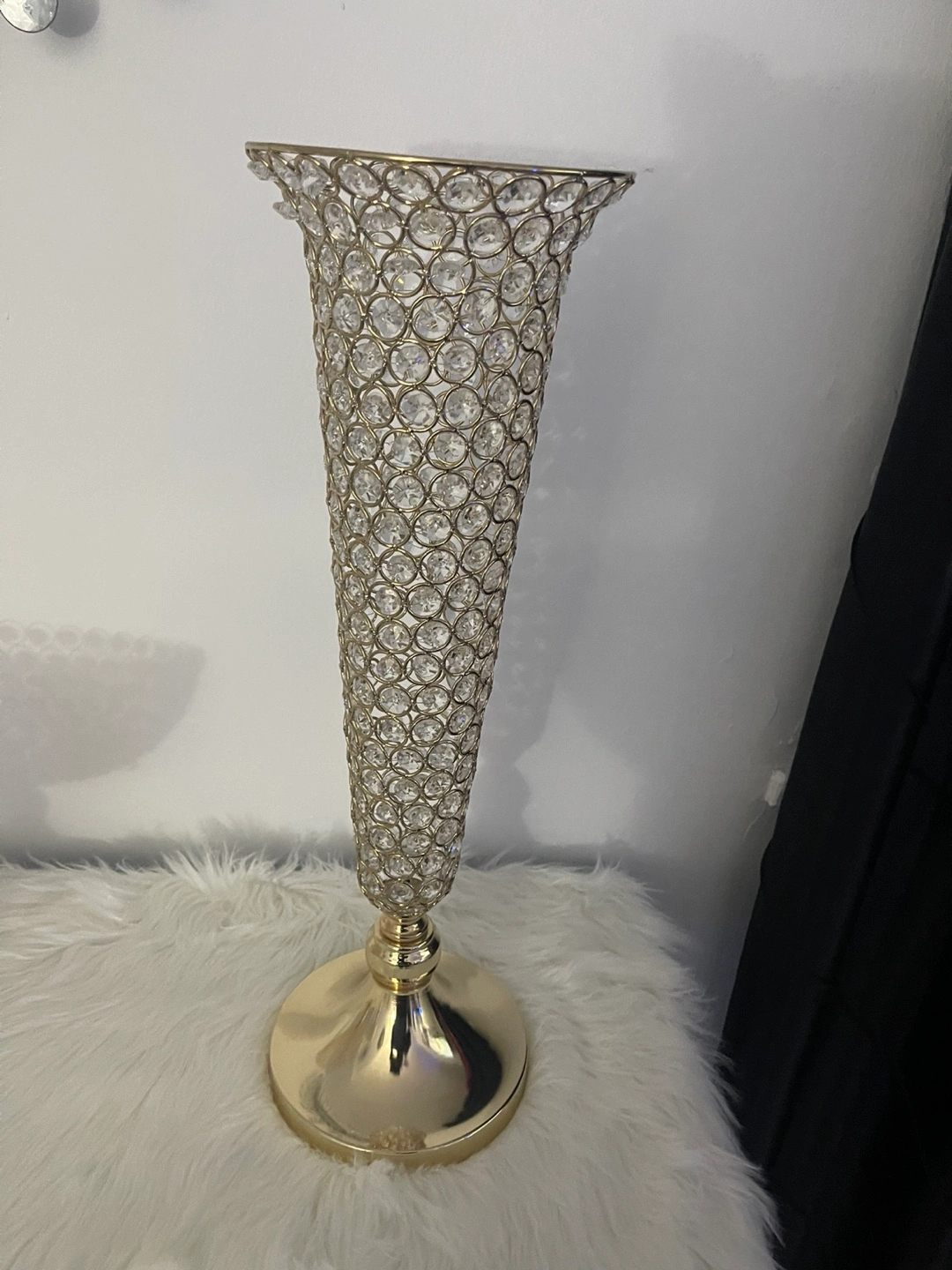 Tall gold crystal beaded vase. Great for centrepieces or home decor. Let me know what you want and I will give you a price , buy more save more , pick up only thank you