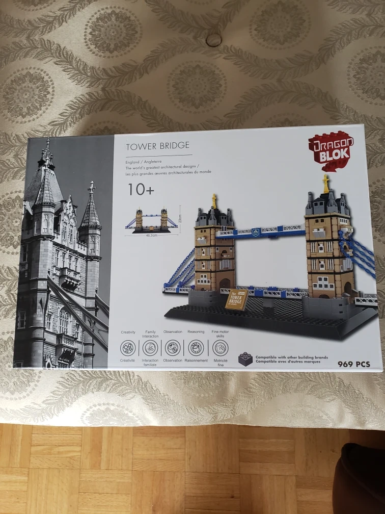 1000+969 piece building set. Includes instructions. Compatible with other building brands. Tower Bridge building set. 10+ years. makes a great Christmas gift.