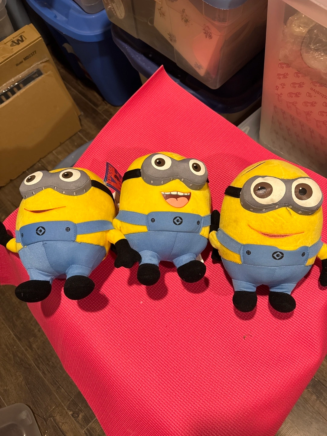 Two Despicable Me Minion plush toys. One is wearing goggles and the other is not. Both are in great condition. Never played with. Stand 22 cms high. Price is for all 3