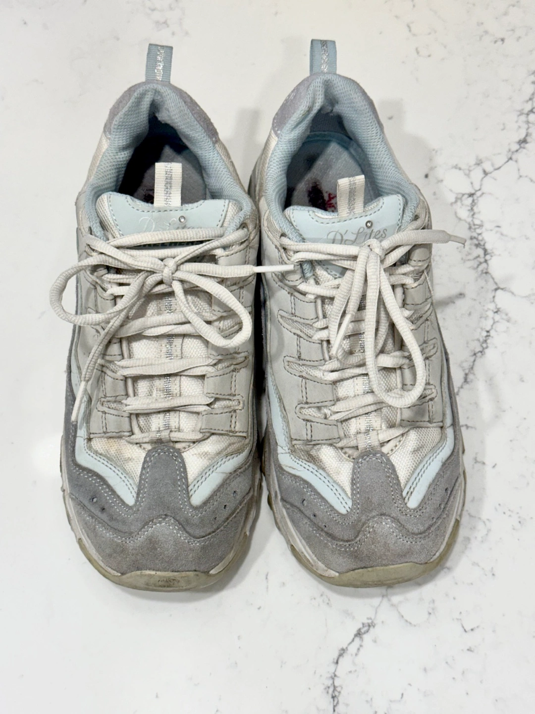 EUC Sketchers D’Lites WMNS 7.5 **NO TRY ONS** As pictured! Super comfy shoes with memory foam, good for the gym or walking/hiking. In good used condition, only worn on and off through the summer. No damage to it, just needs a bit of a clean. Size 7.5 but will fit 7 and 8 as well with adjustments to the laces (for reference, I’m typically between 7.5/8 and they fit well). No try-ons (for obvious hygiene purposes) so please make sure they will fit your shoe size before arranging a pickup. Price is firm, cash only please. Pickup downtown Toronto/Jarvis & Gerrard/Yonge & Dundas or we can arrange to meet along TTC line 1.
