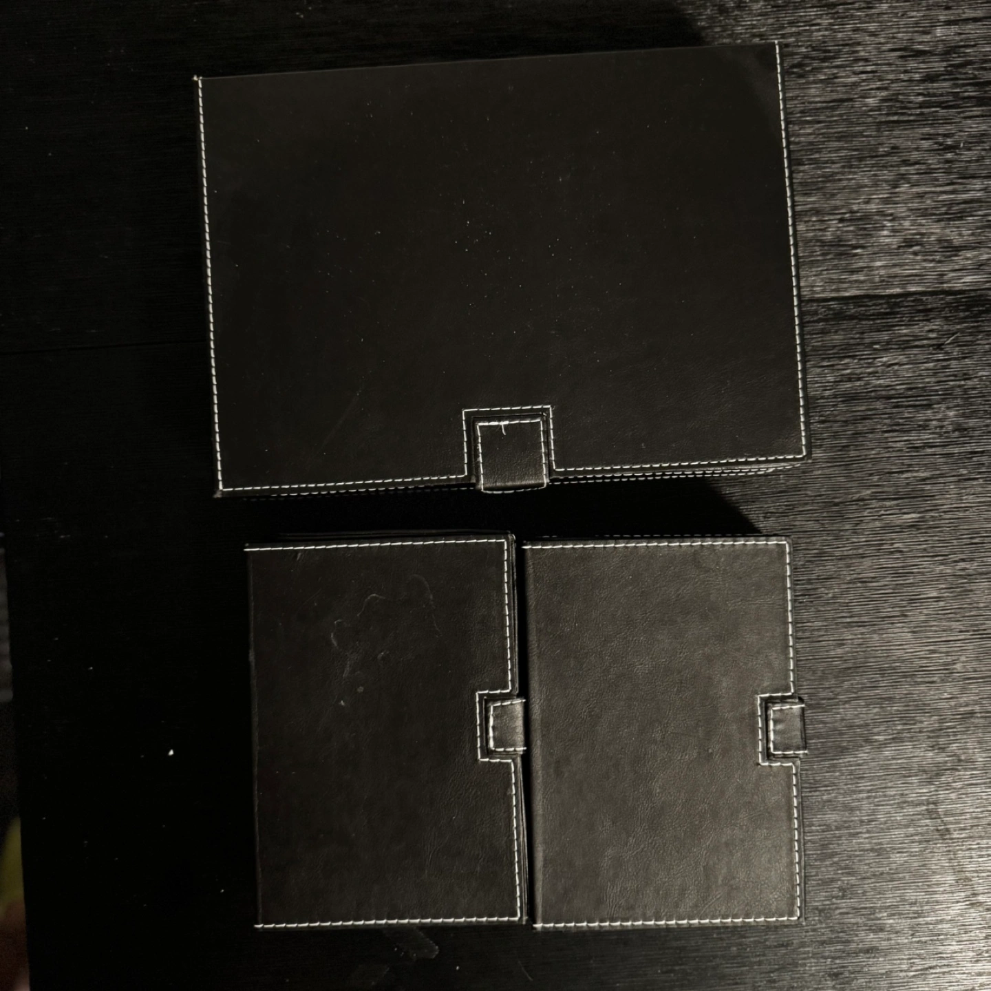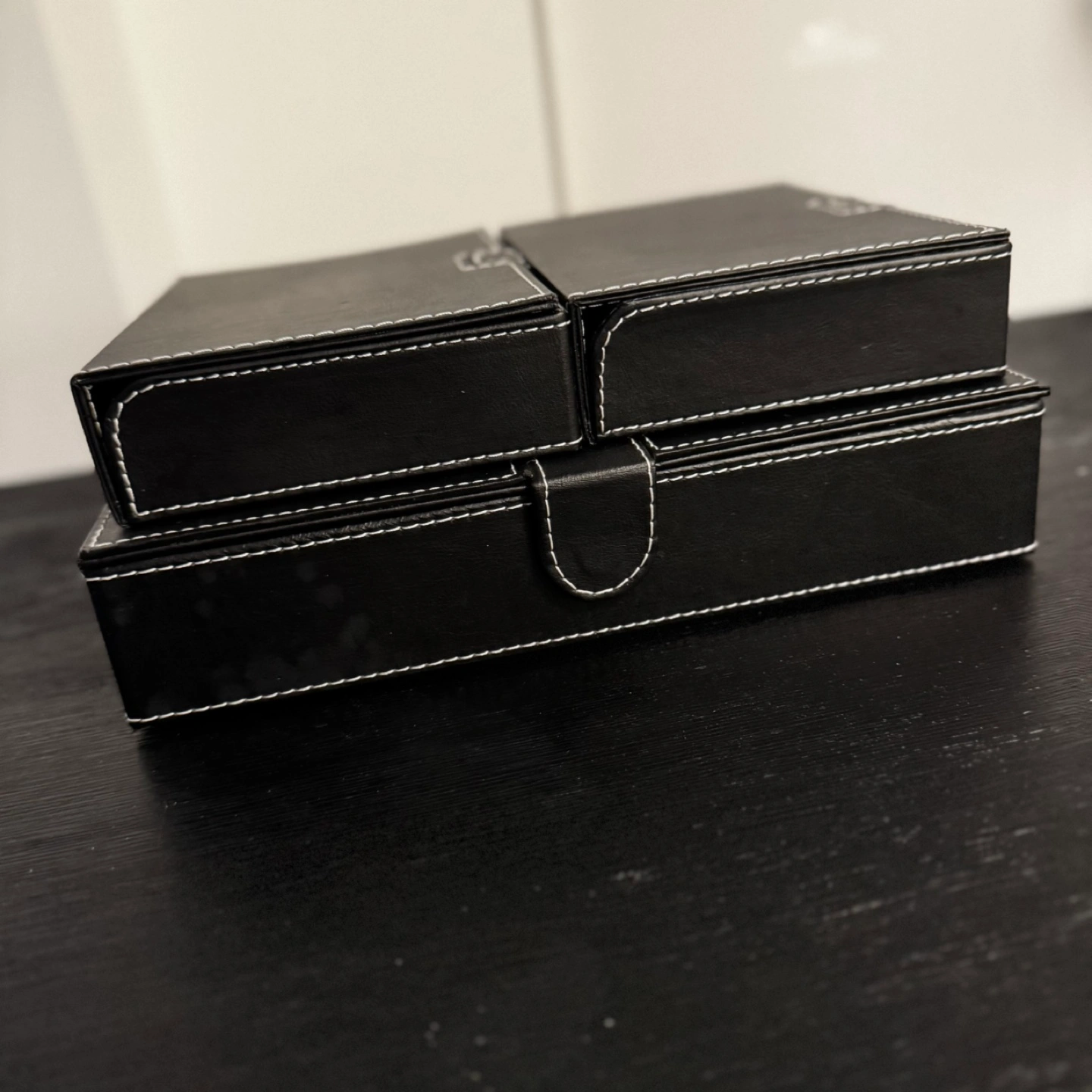 Set of three black leatherette jewelry boxes. Includes one large box and two small boxes. *please read before reaching out* - price is fixed. Reach out only if interested. - item is first pay first serve. - pick up 5 min walk from Sherbourne Station (parliament / Bloor)