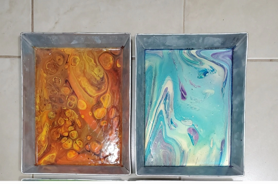 * Each tray is unique and features a different colour scheme with swirls and bubbles.