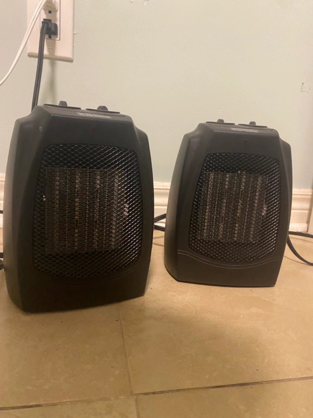 Two electric heaters work well. One of them has an issue with the button on bottom of itself. If stuck something underneath it works. For making your room warm!!