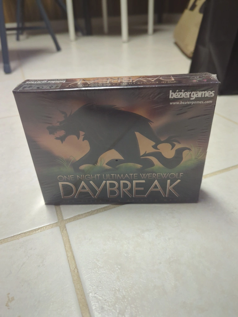 Brand new and sealed One Night Ultimate Werewolf Daybreak board game. It's a fast game for 3-7 players where everyone gets a role!