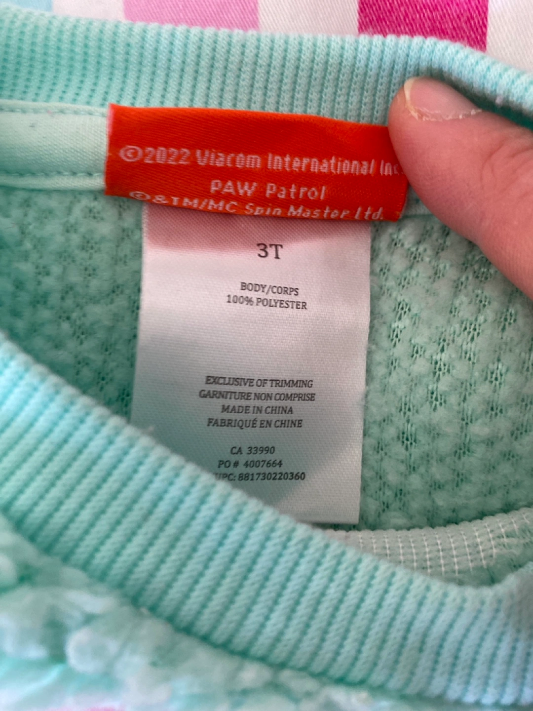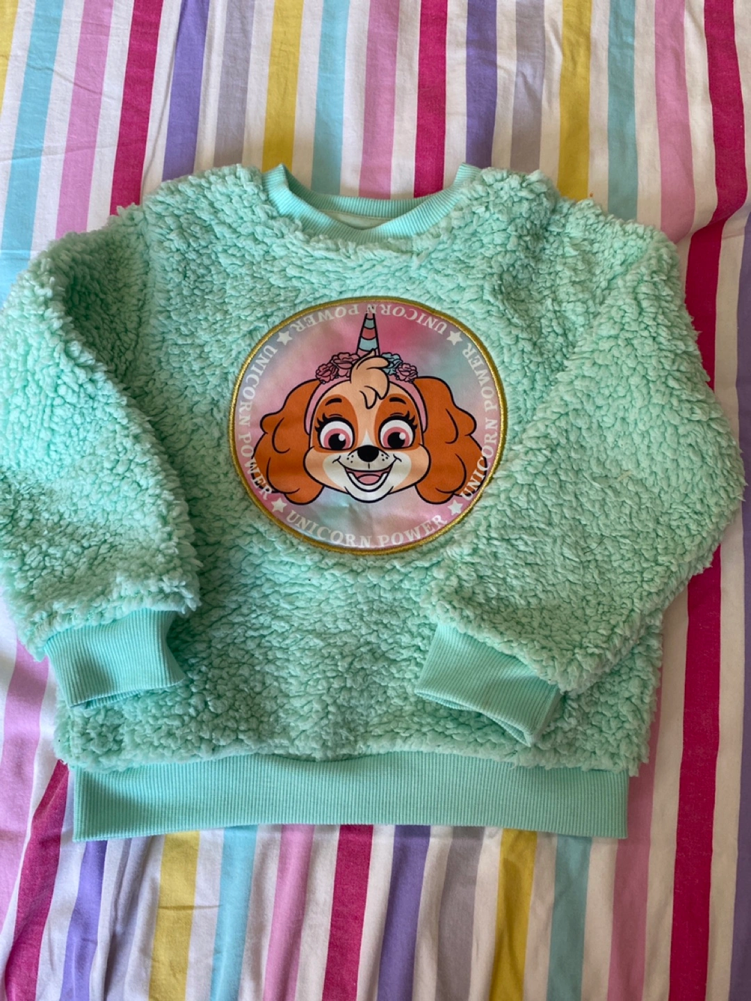 Brand New without tag Green fuzzy sweater featuring Skye from Paw Patrol. Features a unicorn and rainbow design.