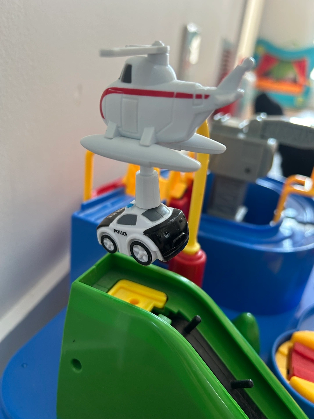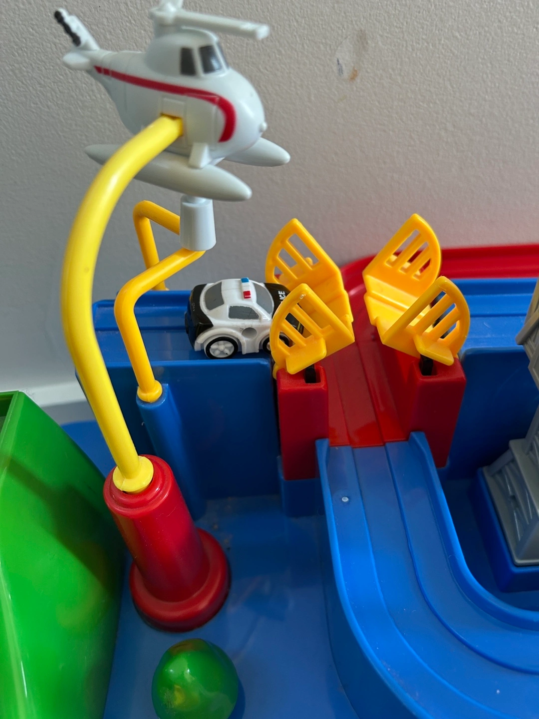 Interactive playset with mechanisms. Includes a crane, ramp, and 3 vehicles. π π π