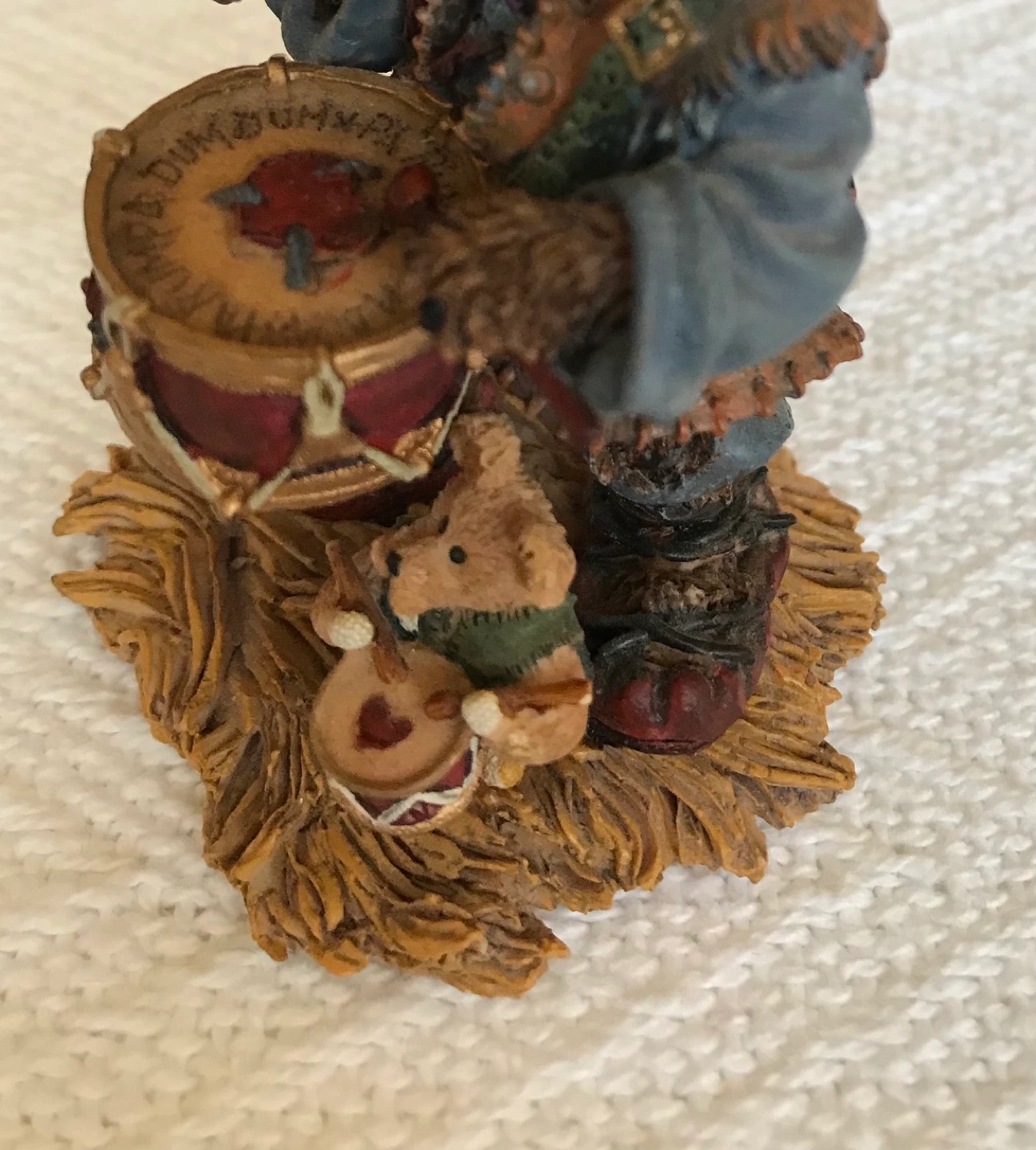 This Boyds Bearstone Collection figurine features Matthew as the drummer in a beautiful nativity scene.