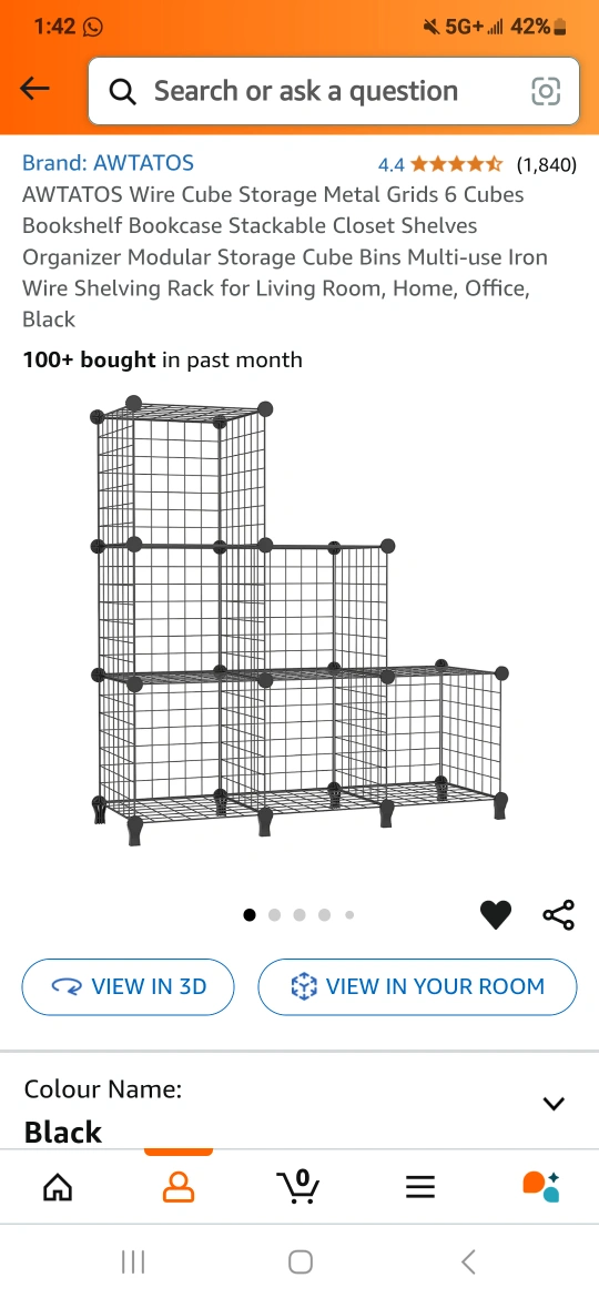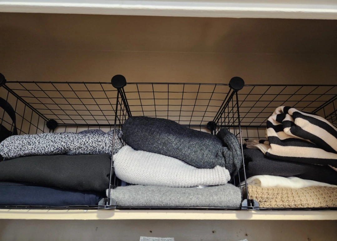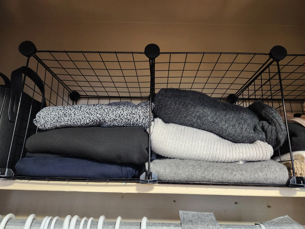 Black wire cube shelving unit. Six cube design. Can be used to organize a closet or other storage space. Original price 39.99 CAD.