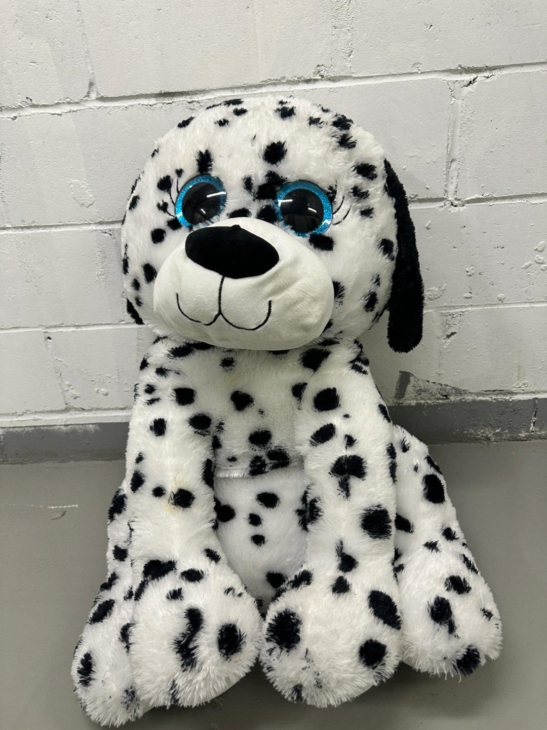 Large plush Dalmatian dog with sparkly blue eyes. Great for cuddling or decoration. And a teddy bear. $20 each