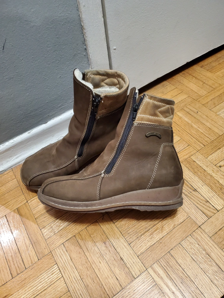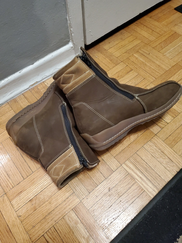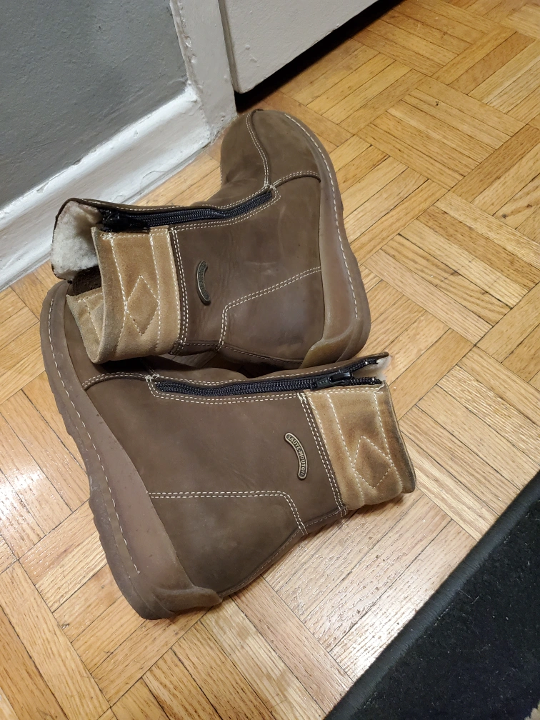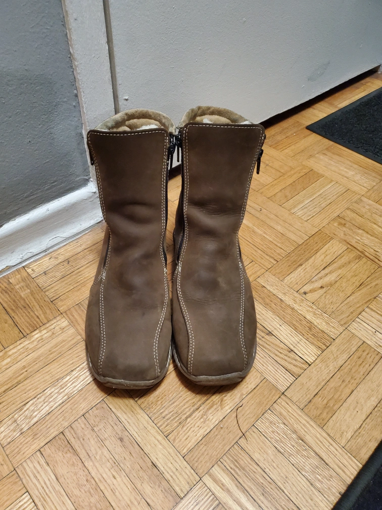 52Brown leather winter boots with zipper closure. good condition only cash price firm no delivery. I have more Women's and Girls Boots and shoes for sale. I have and app Facebook and app Kijjijji. Location Cawthra and Lakeshore Mississauga