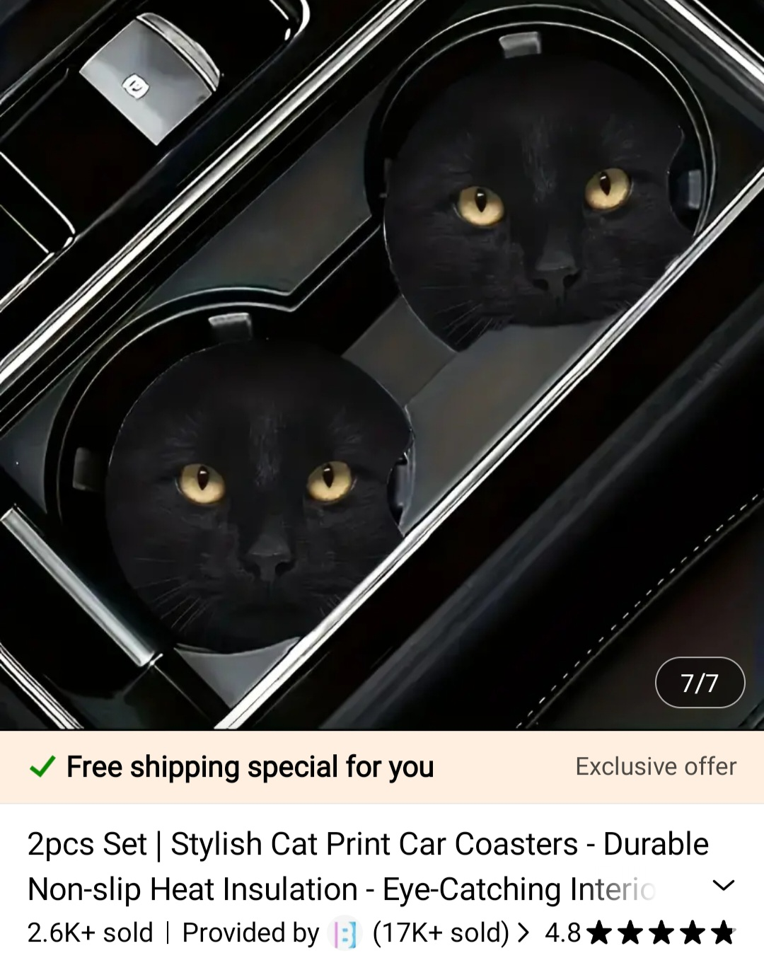 1 / 41 / 4Buy & Sell2 PIECE CAT CAR COASTERS2 PIECE CAT CAR COASTERS$5Non-Slip, Heat Resistant, Durable Perfect gift for cat lovers! Pick up near Hillcrest Mall ConditionNewWHERE TO MEETCheck LocationView MapSELLERNicoleRichvale20822 reviews1 chats·2 favorites·55 viewsSEND CHAT TO SELLERHi Nicole! I’m interested in your listing.Hi Nicole! I’m interested in your listing.Get the Karrot app to chatSign In to chat