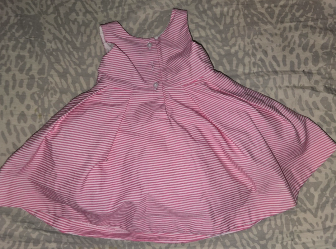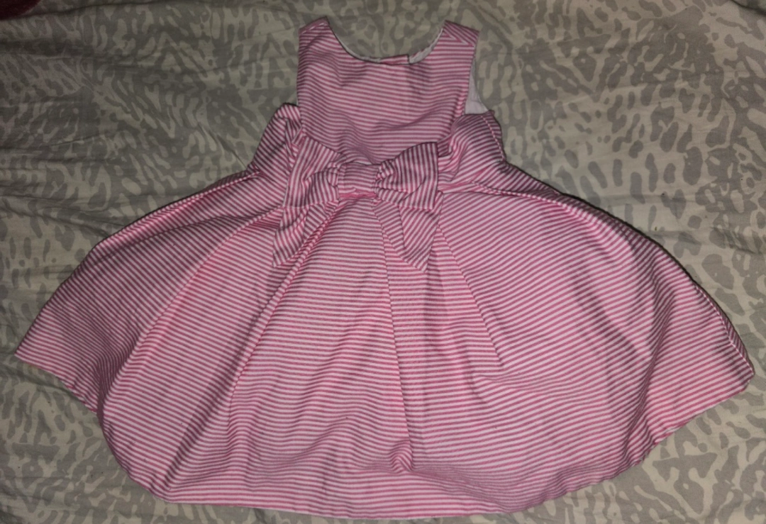 preloved Pink and white striped dress with a bow. Sleeveless, a-line style.