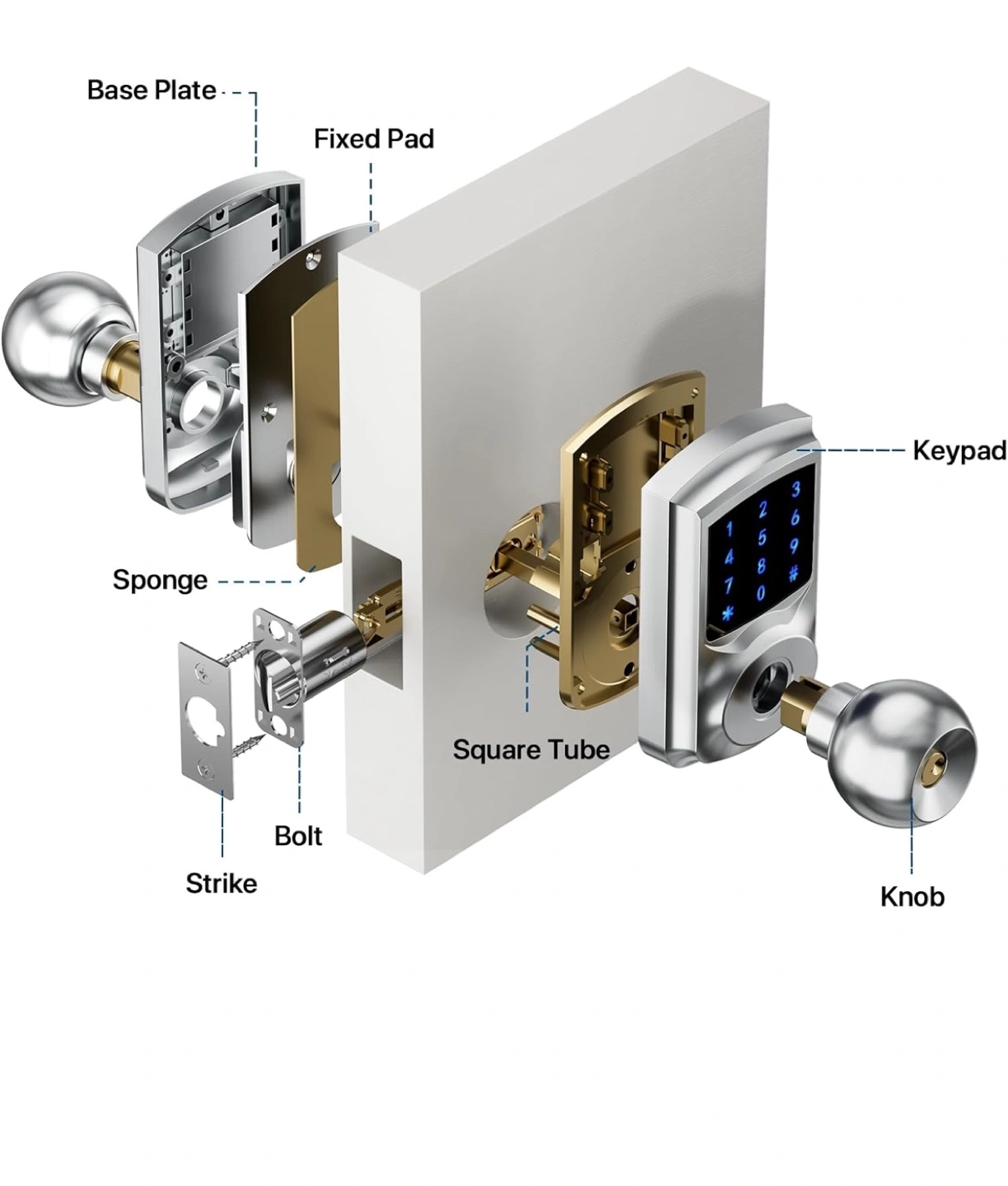 HIDALIFE Keyless Entry Door Lock, Keypad Door Lock with Handle, Touchscreen Digital Lock, Anti-peep Password, Auto-Lock, Easy Install for Front Door, Office, Apartment-Satin Chrome
