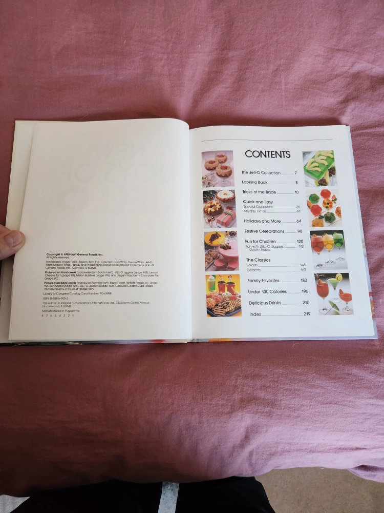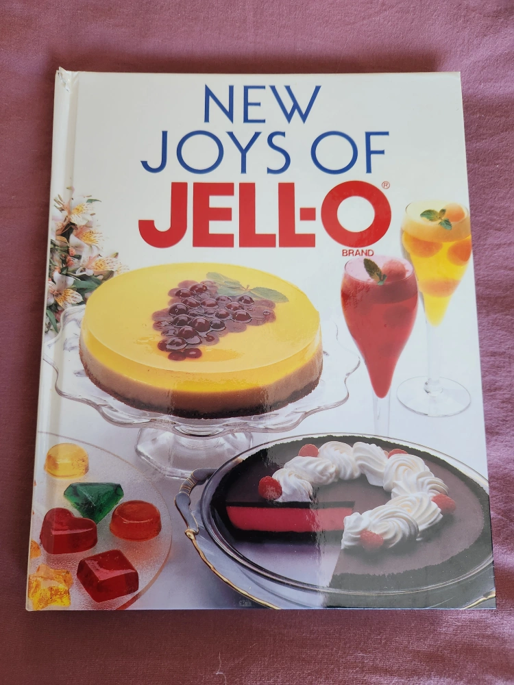 Cookbook filled with recipes using Jell-O. Features over 220 recipes, including desserts, snacks, and main courses.