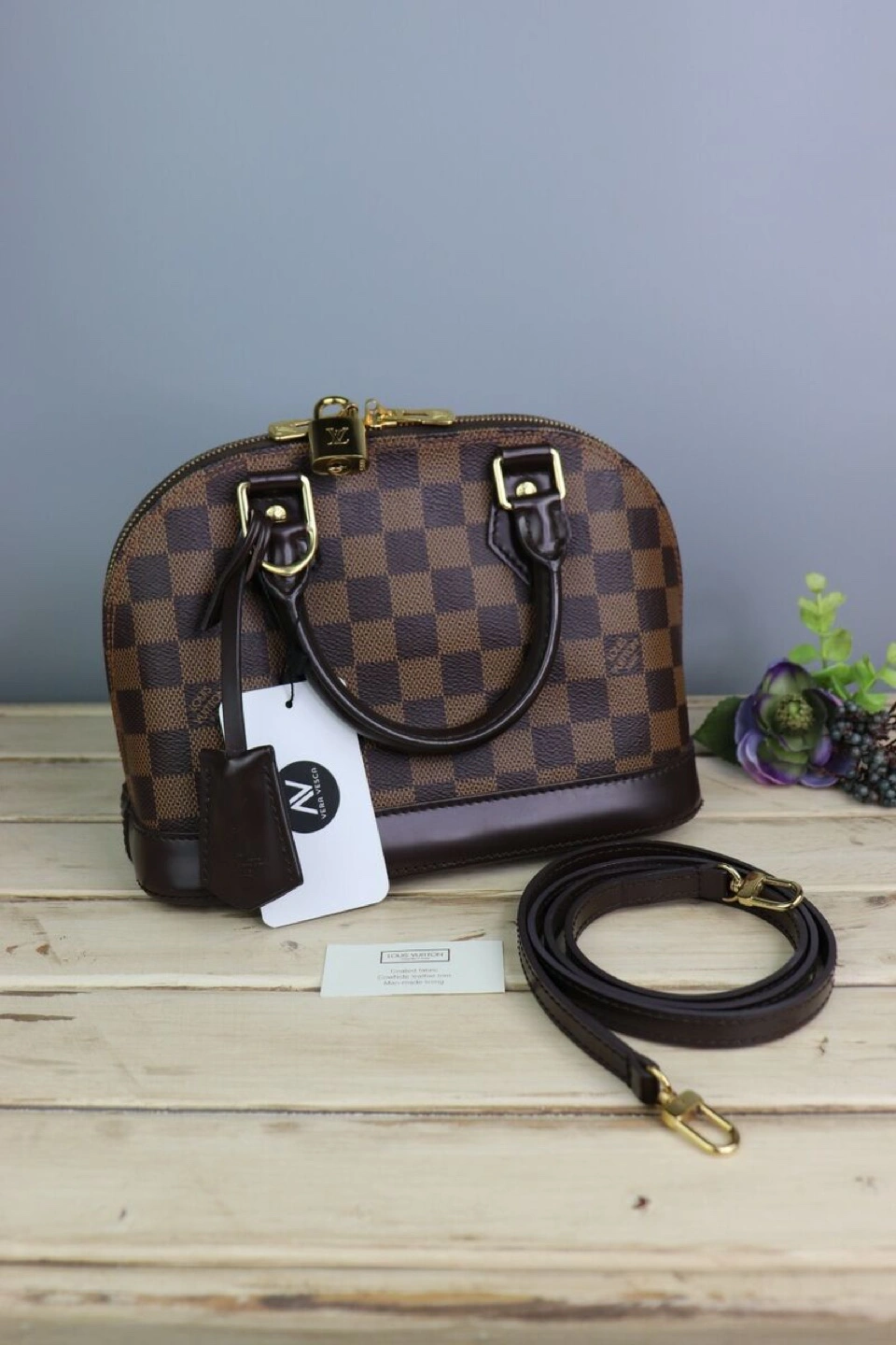 Pre-loved Louis Vuitton Alma BB in Damier Azur canvas. Only used once and never been used again. Red interior available at an unbeatable price! This stunning piece combines luxury and timeless design, perfect for anyone looking to elevate their style.