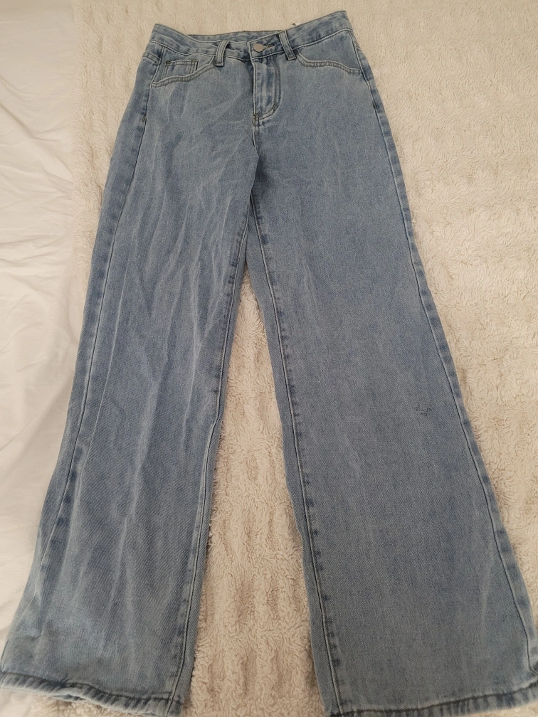 light washed denim wide legged jeans (new never worn!) size xs/s got it as a gift but didn't fit. contact me if interested!🩷