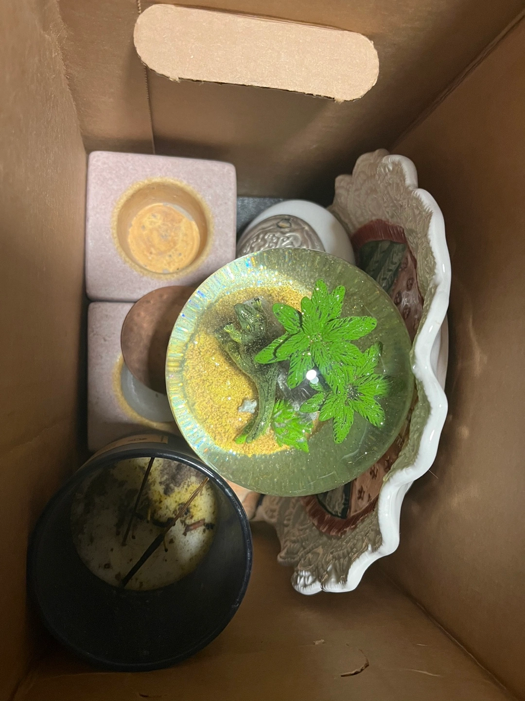 1000+Glass globe There’s a dinosaur in it one used candle you can use the glass, a plate Another is like a candle holder thing, and it has another set that has the candle in it and other stuff Must take all