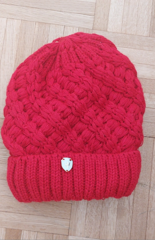 Red knit toque with a fleece lining. Cable knit design. Perfect for the cold winter months.