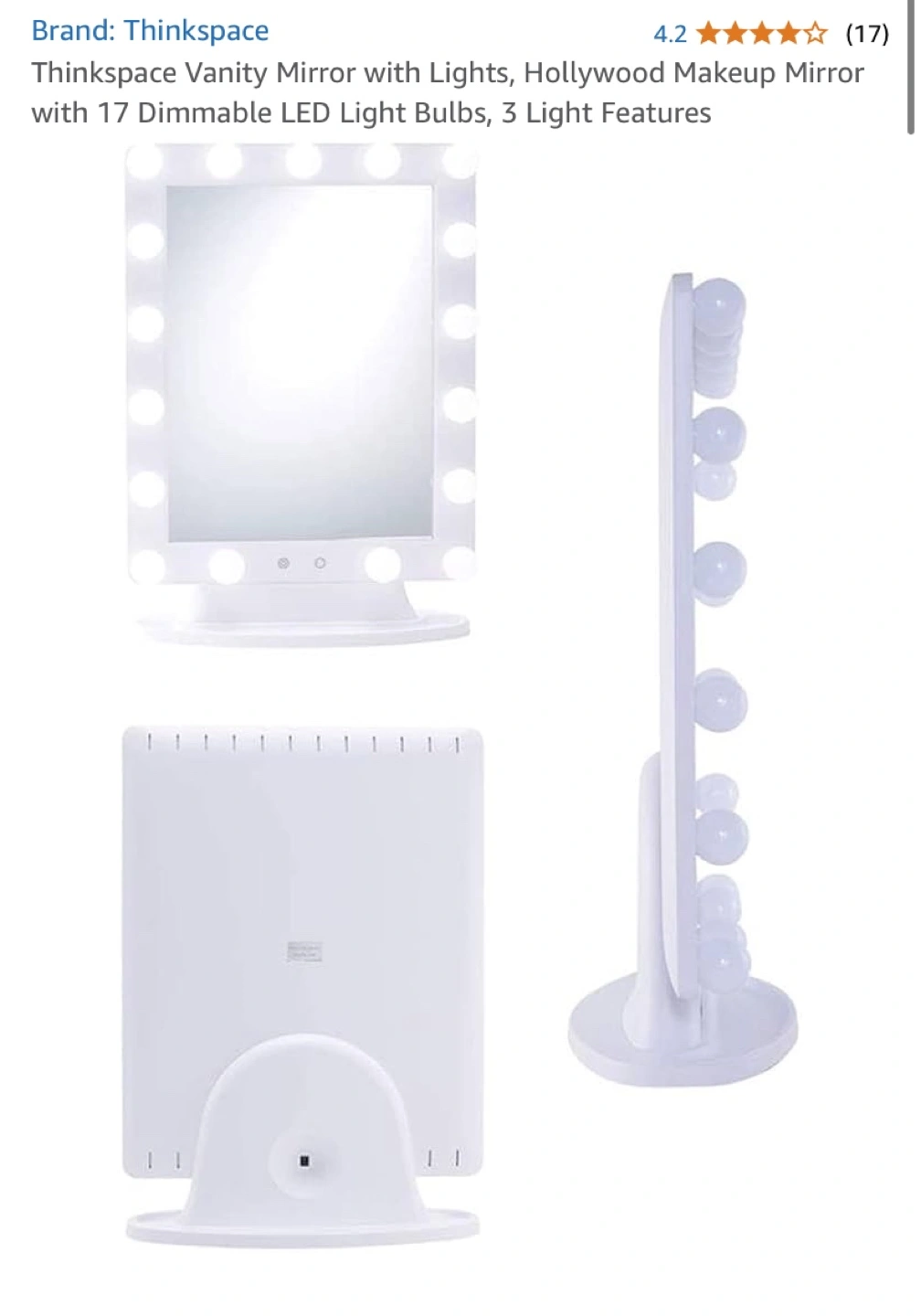 VERSATILE LIGHTING: Enjoy customizable illumination with our Thinkspace Vanity Mirror featuring 17 dimmable LED bulbs. Select from three light features - cool white, warm white, and neutral white, to suit your makeup and styling needs.