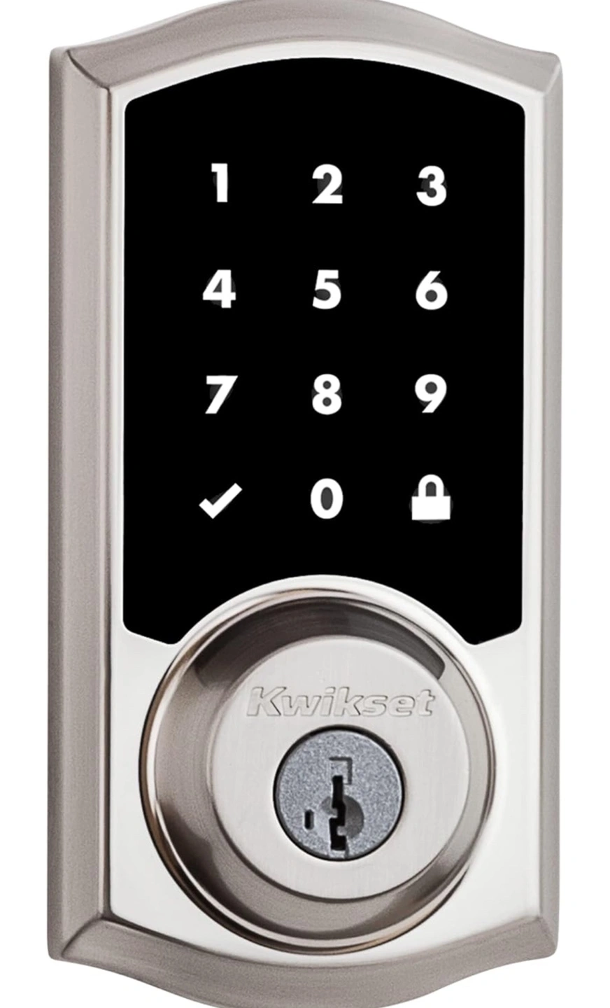 46Kwikset SmartCode 916 Z-Wave Smart Lock, Keyless Entry Ring Compatible Door Lock, Touchscreen Electronic Deadbolt, SmartKey Re-Key Security, Smart Hub Required, Traditional Satin Nickle