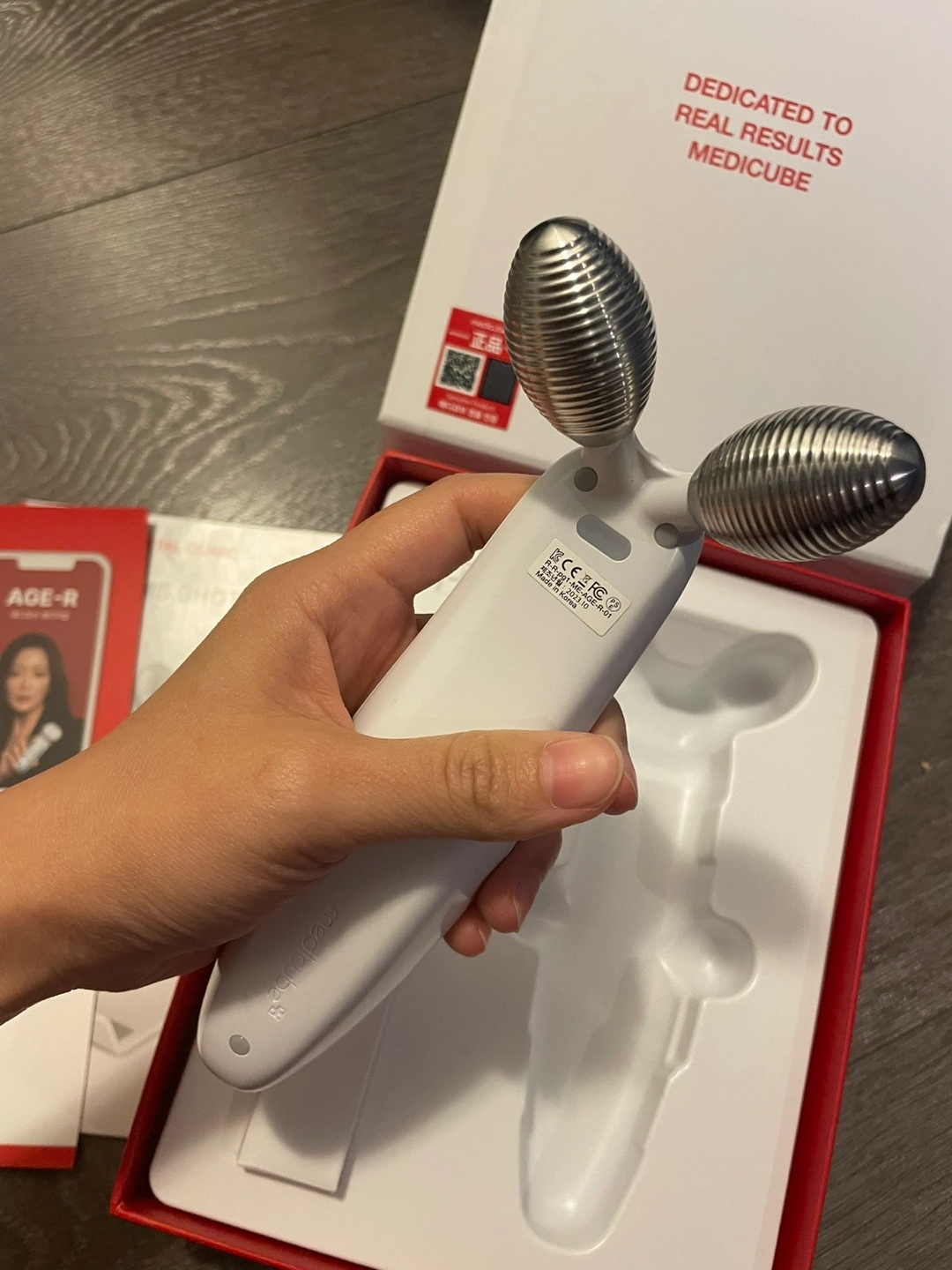 Popular Medicube Age-R Derma Shot Massager is an advanced device designed to improve facial contour features and reduce the appearance of lines. It replicates the acupressure massage techniques used by estheticians for a professional and effective treatment.