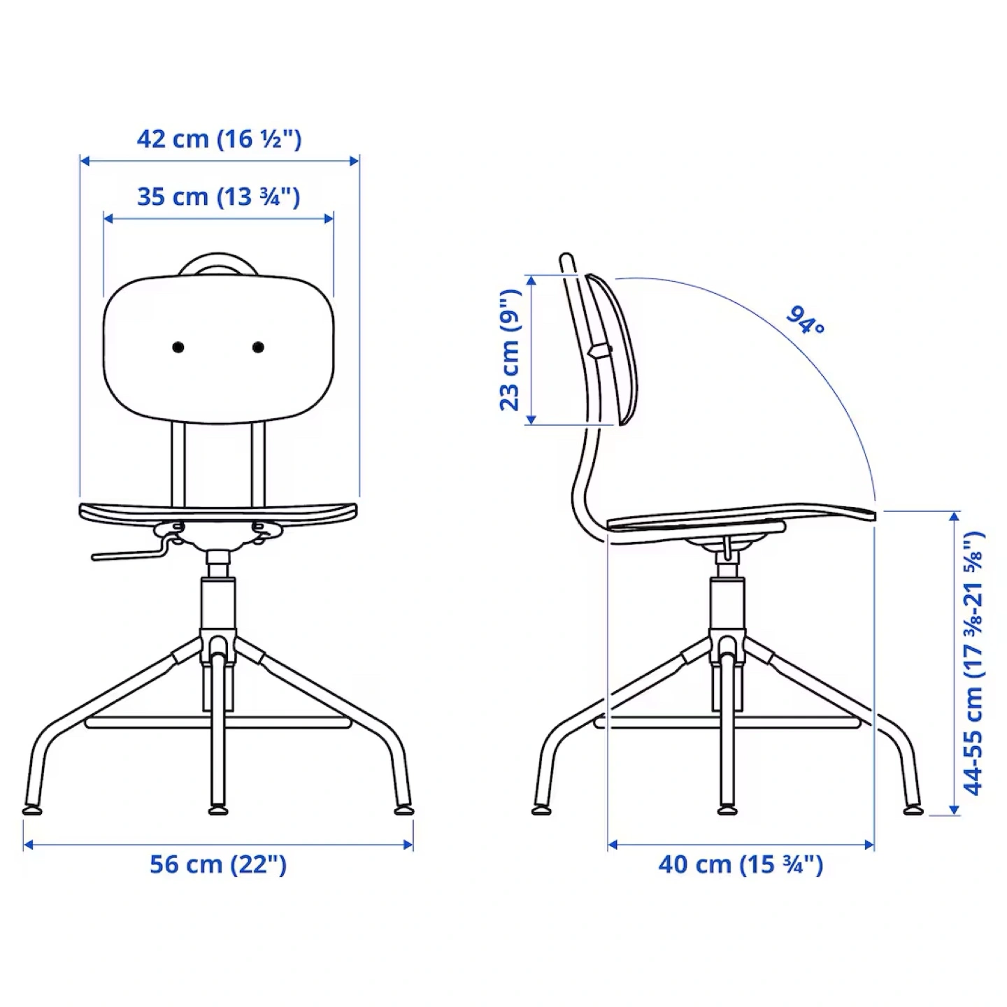 - Min. seat height: 44 cm