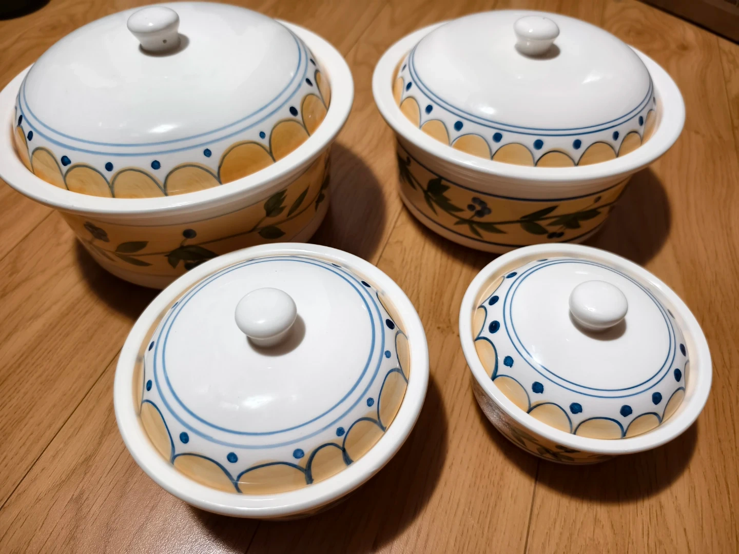 Selling a Migo Housewares 8-piece casserole set! The set is super white and hand-painted with a lovely floral design. Comes with the original box, brand new never use, just took out for photos