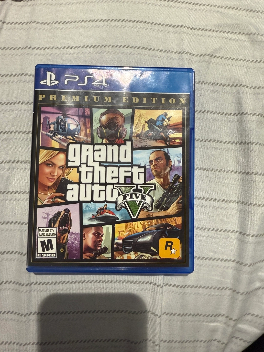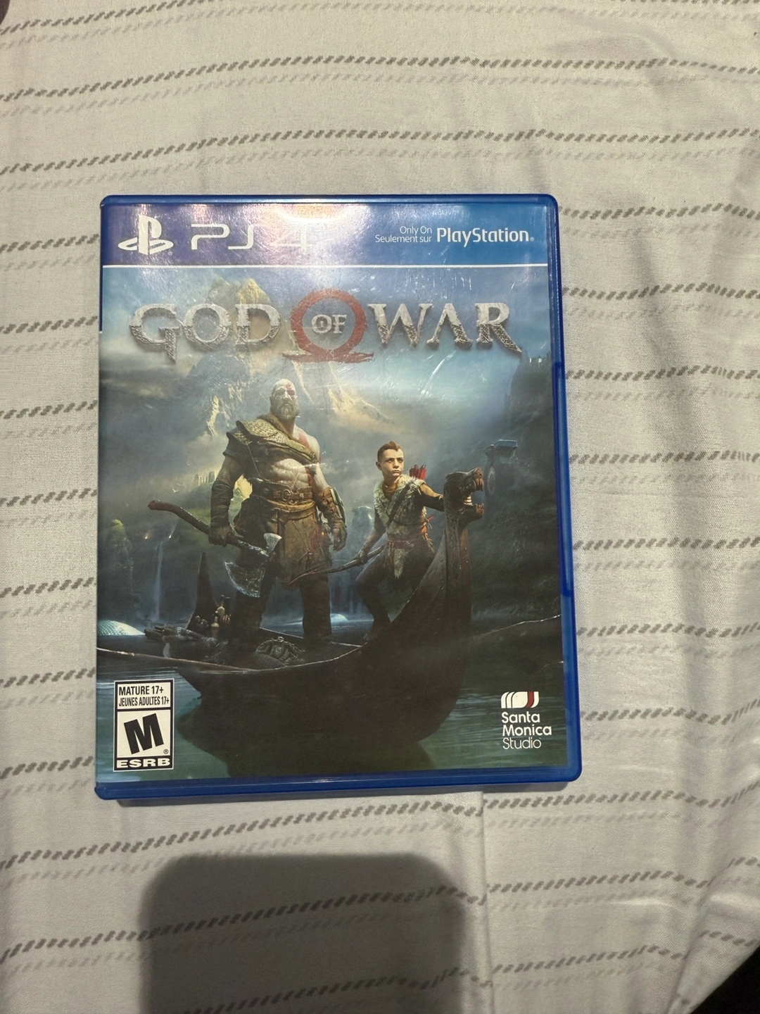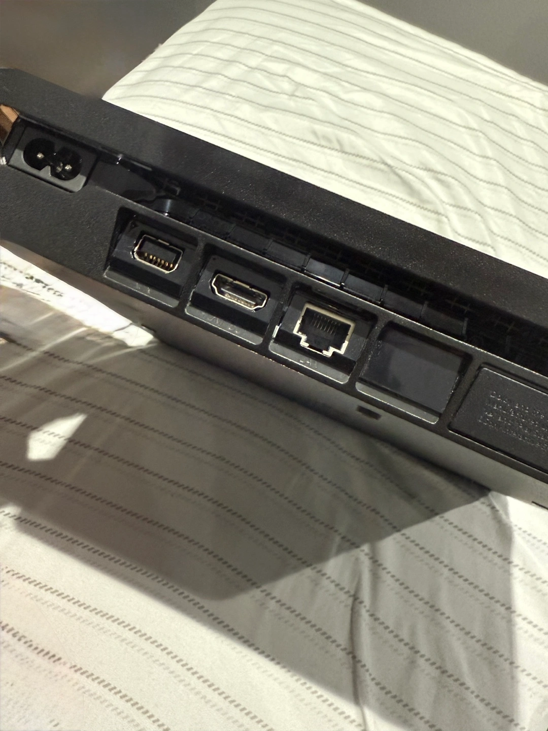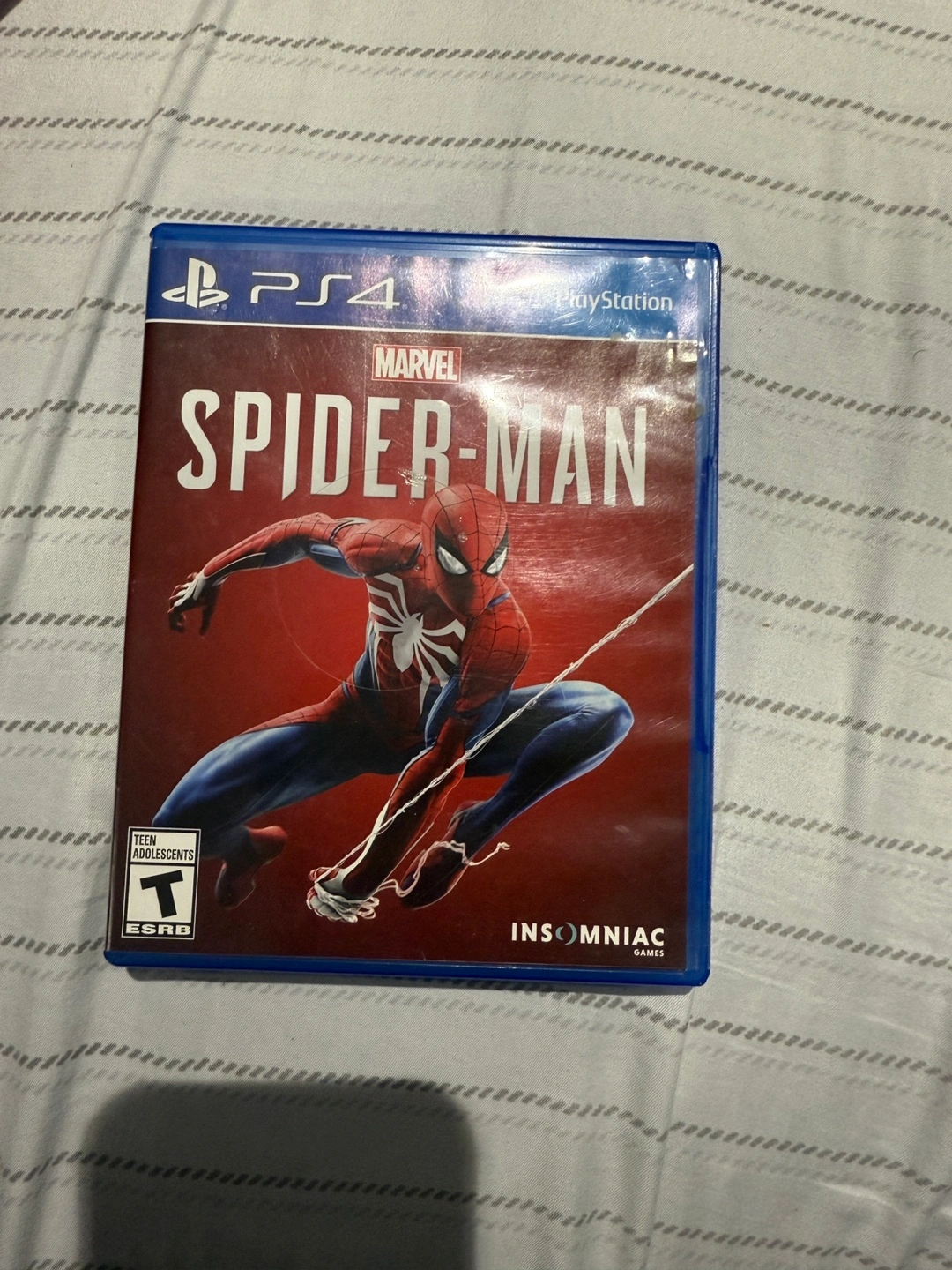 PS4 console with 2 controllers, 4 games, and cables. One red controller and one black. God of war Spider man GTA 5 Snow Runner