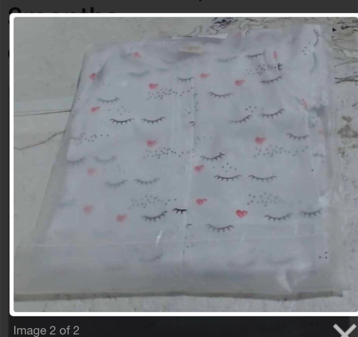 White long-sleeved sleepsuit and matching headband for babies. Features a cute sleepy eye and heart print. Made from soft material for comfort. Perfect for newborns and infants!