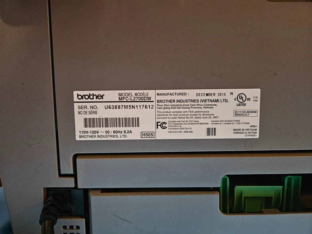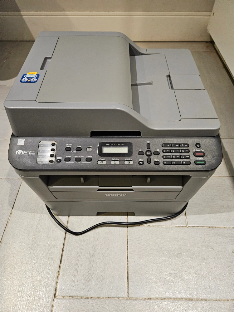 117Brother laser printer. Older but hardly used. All-in-one printer, scanner, copier and fax machine. Good condition but will need an ink cartridge soon. $40
