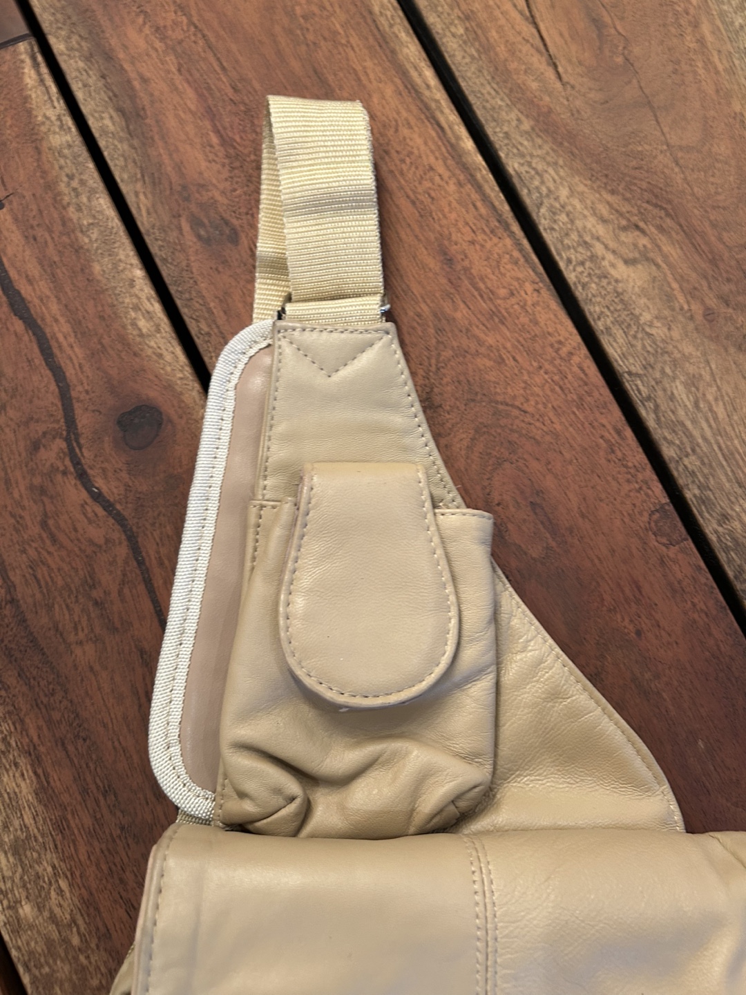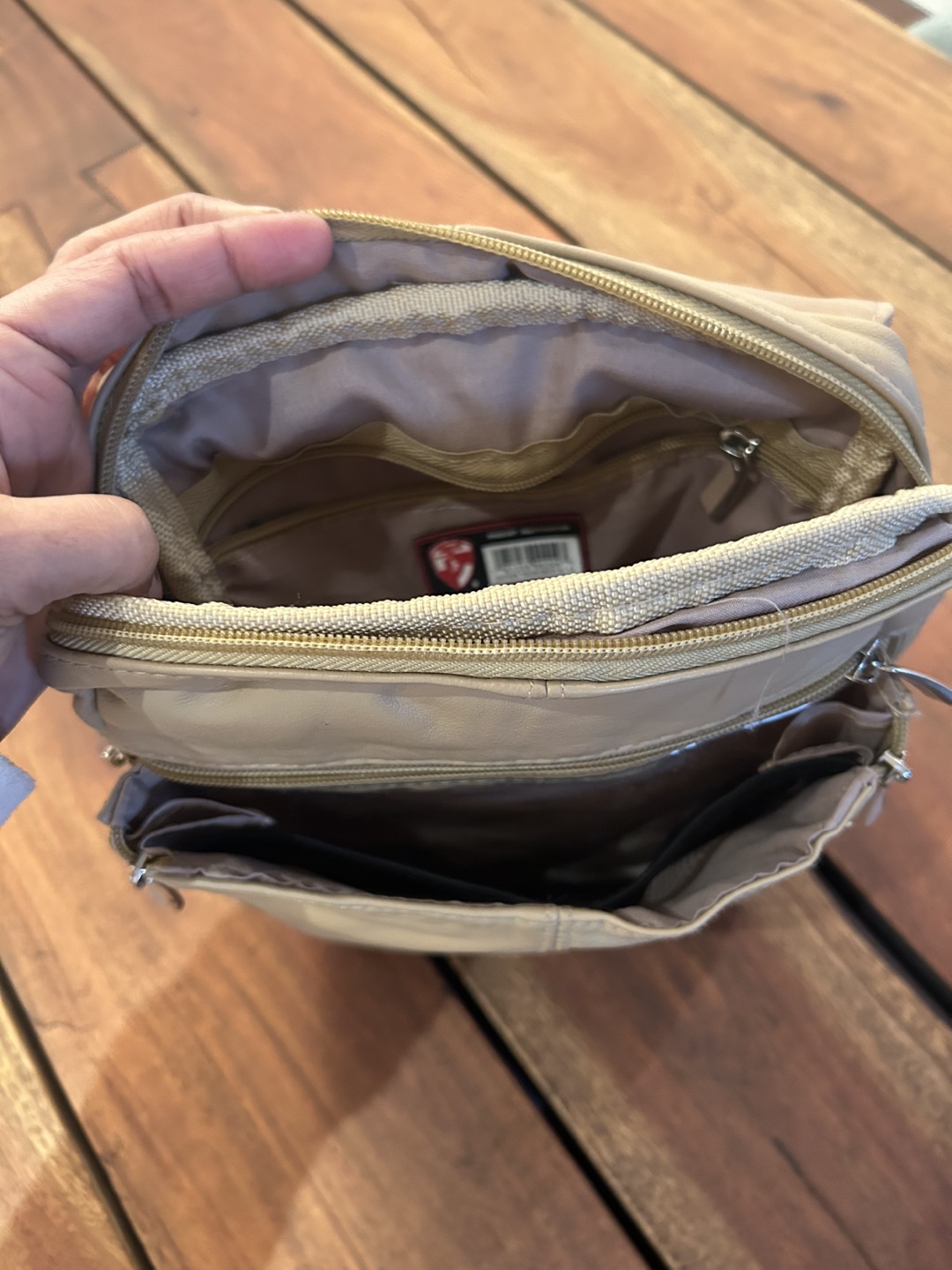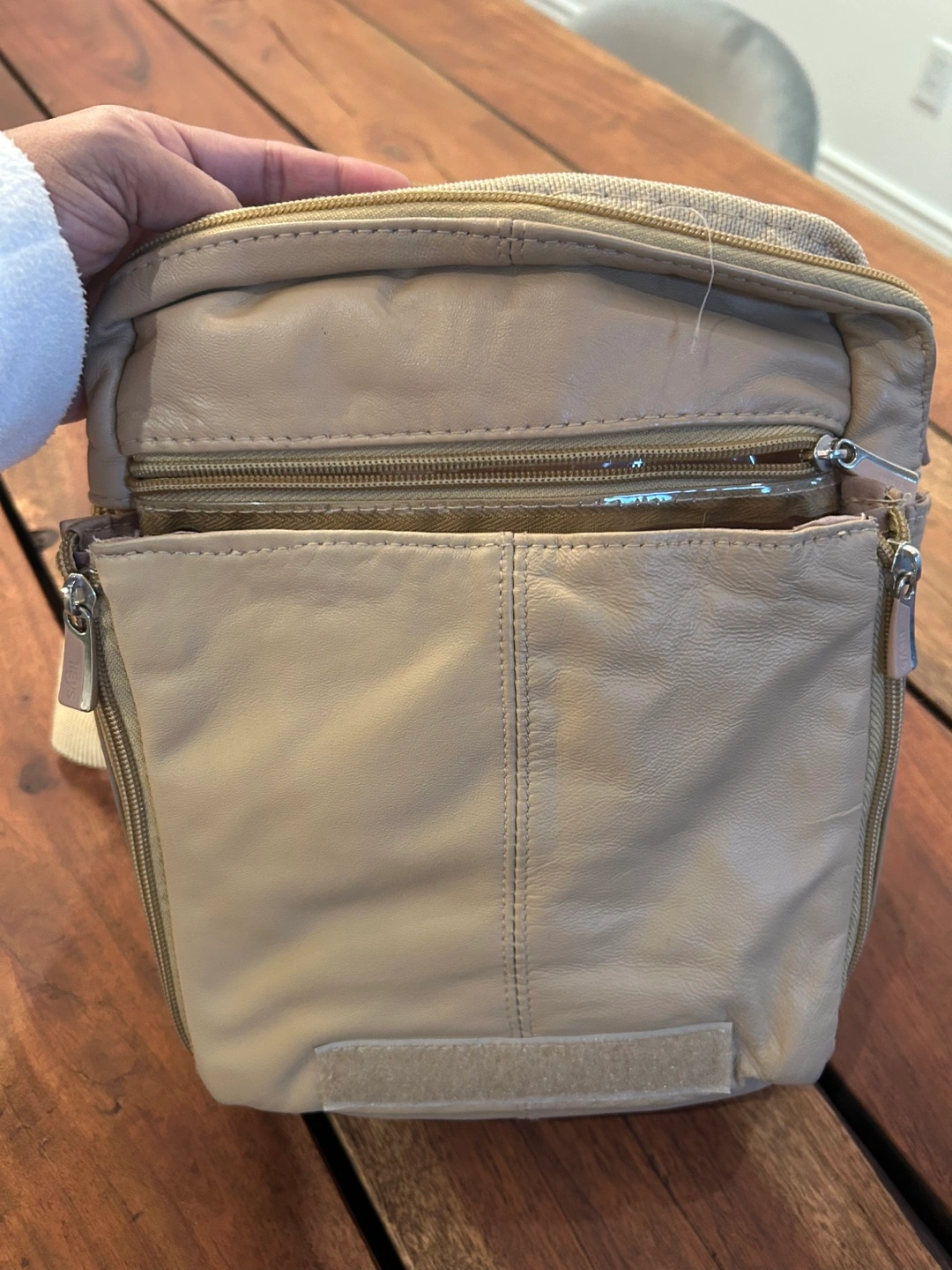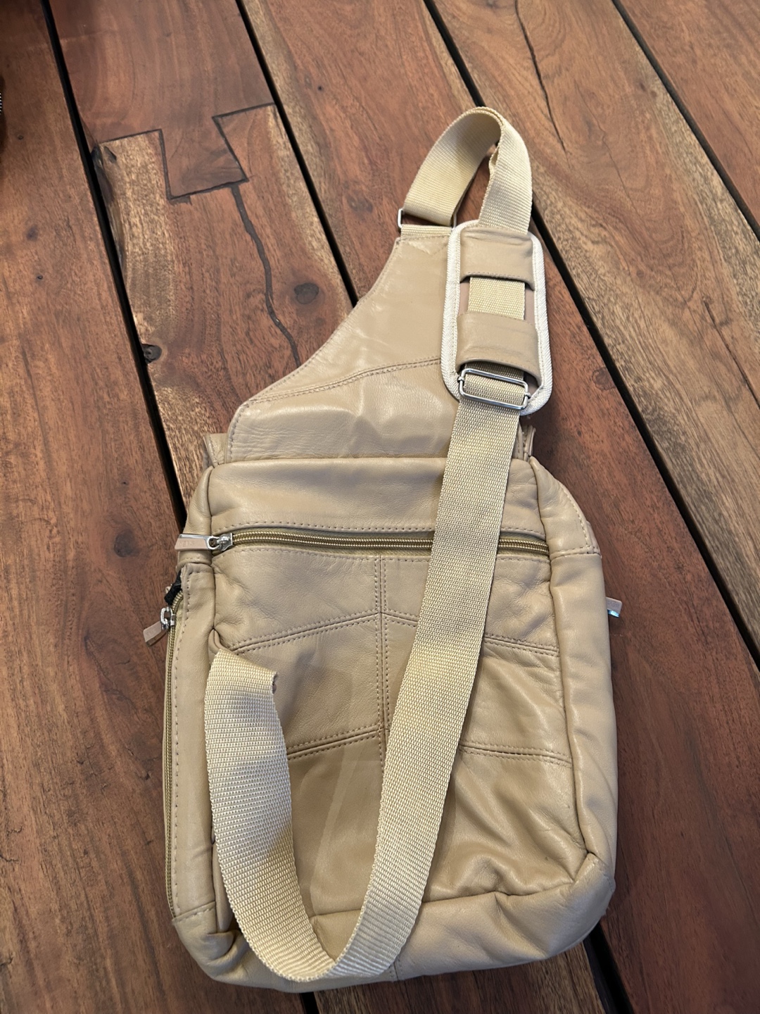 Lots of compartments. Soft and comfortable adjustable strap. Perfect for travel or just going about daily life.