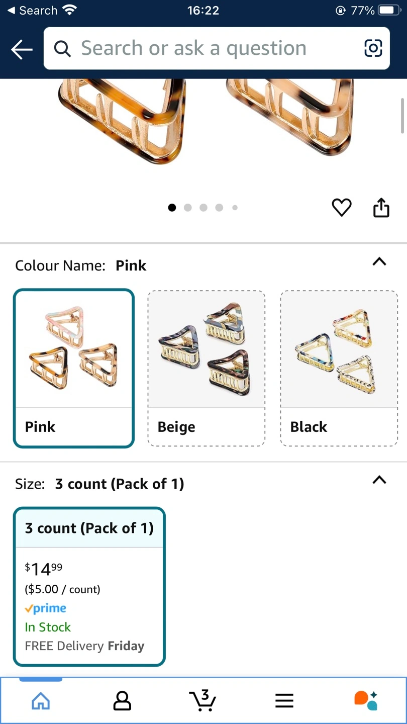 3 Pcs Small Hair Claw Clips 2 inch Acetate Hair Jaw Clips 3 Colors Set Fashion Hollow Triangle Hair Clips for Women Girls, 1 Pink and 2 Tortoiseshell [Modern Design] This triangle hair clip not only embellishes your hair but also creates an elegant air that will make you more attractive. The small hair clip perfect for ladies and girls of all ages. The large hair clips are the perfect gift for birthday, mother's day, valentine's day, etc. [Environmentally and Durable Material] The hair clips for women are made of high-quality acetate board, it’s light weight, equipped with a safe metal spring to make them more durable. Because it is extracted from the pulp of plants, so it is very environmentally friendly. Wide Application: Let’s lighten up with a top knot that packs all the personality. The mini claw clips can add a pop color to a monochrome outfit or holds hair while cutting or styling. [One Size Fits Most People] Our triangle hair clips suitable for most types. Whether you have 2A or 4C hair, can wear these for a great look every day. Teeth design can greatly handle whatever thick or thin hair. Enough long clips for hair will hold tightly without pulling or damaging your hair. [Size & Color] 3 Pack 5*3.5cm/2*1.4 inches cute hair clips are simple and practical. 3 different colors(pink, Beige and Coffee color ) in total for your different daily mood, dating, or other needs. *Pickup Locations: Markham Road & 14th Avenue, Markham, or 500 Esna Park Dr, Markham *Shipping Options available with an extra fee *Thank you for your interest in these items. Please also have a look at my other items on sale
