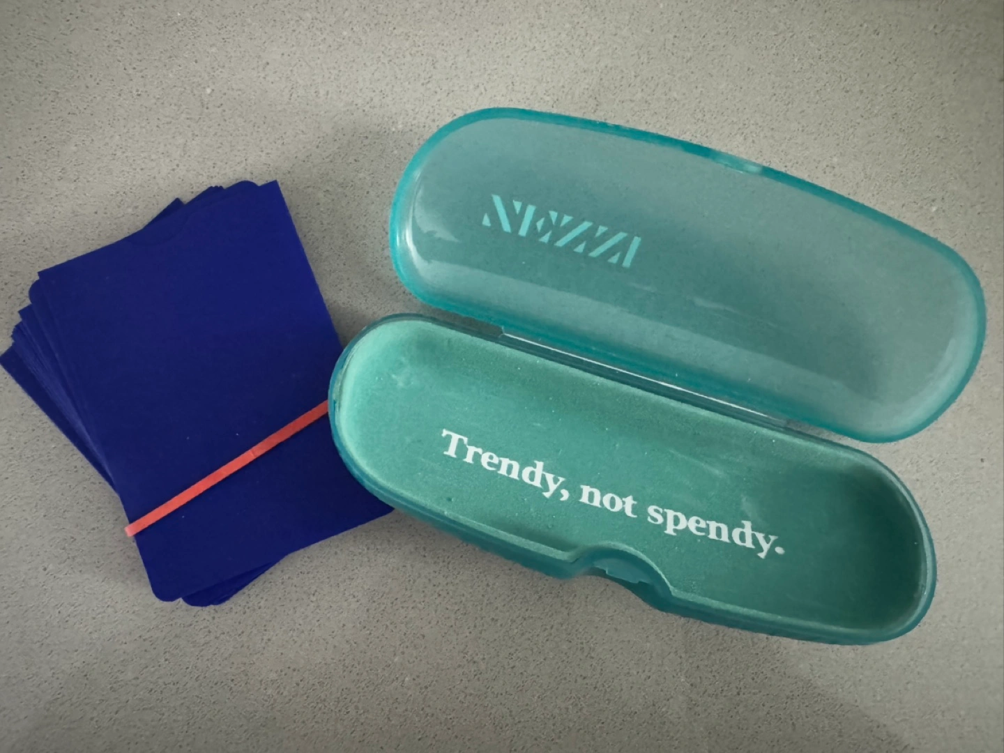 Giving away blue plastic sleeves and one Zenni glasses case.