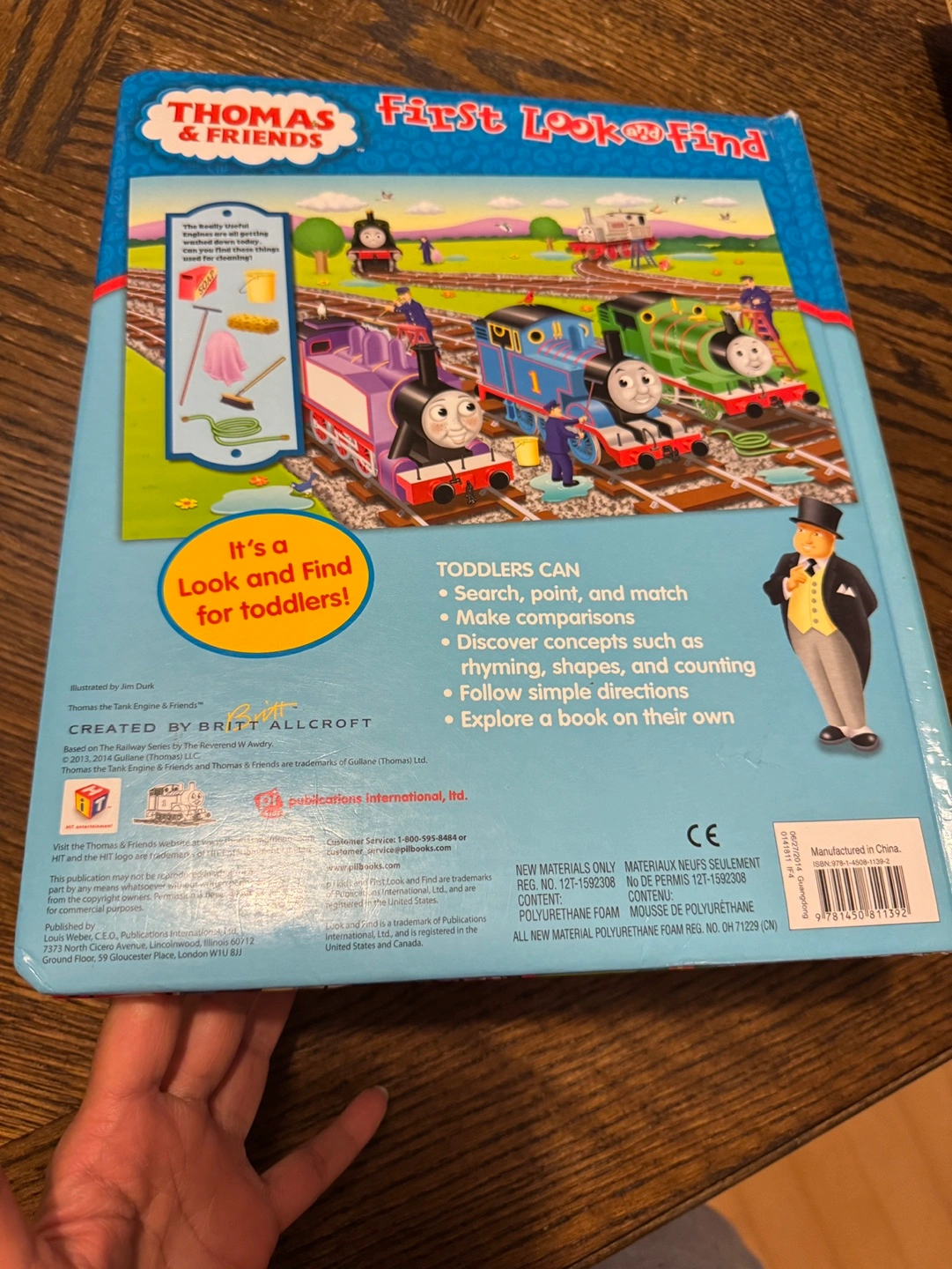 Toddler book featuring Thomas the Tank Engine and his friends. Includes search, point, and match activities. Great for learning shapes and colours.
