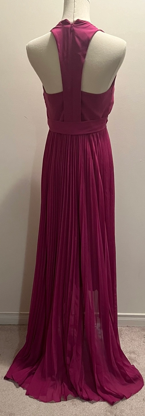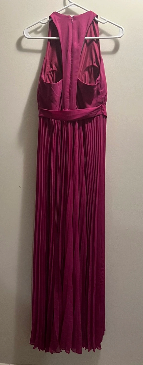 Excellent condition, like new!! Pickup Brampton or downtown Toronto Pink pleated maxi dress with a V-neck and a tie at the waist. The dress is sleeveless and has an racer style back. It is a high-low dress, with the front being shorter than the back. Halter-style construction Surplice-neckline front of a vibrant full-length dress Tight accordion pleats enhance the rippling dimension of the sweeping high/low skirt. Feel sexy and flirt as you dance the night away Hidden back-zip closure Has chest padding 100% Polyester (shell & lining) Size: 4 Details: SLEEVELESS HI/LOW PLEATED SASH - TIE BELT BACK ZIP CLOSURE RACER BACK