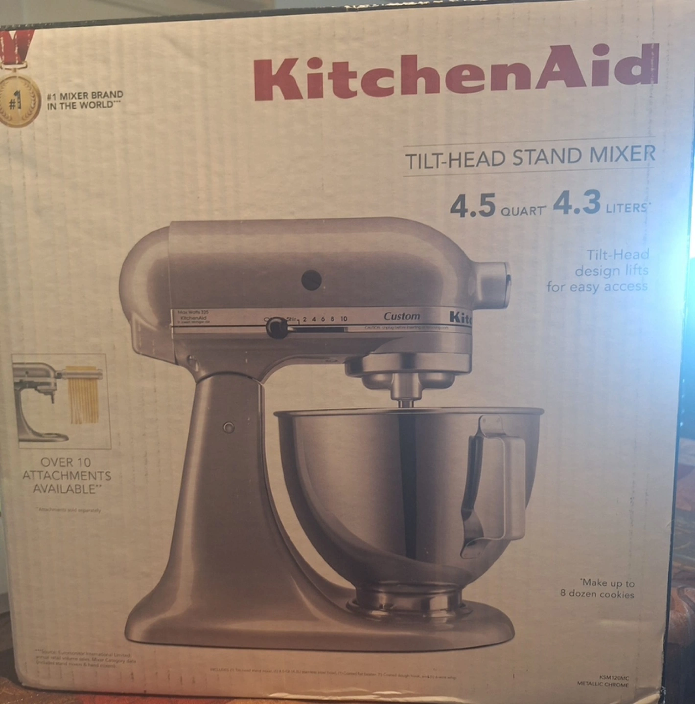 This Brand New in Original Box Never Been Opened Box KitchenAid Tilt-Head Stand Mixer is a must-have addition to any kitchen.