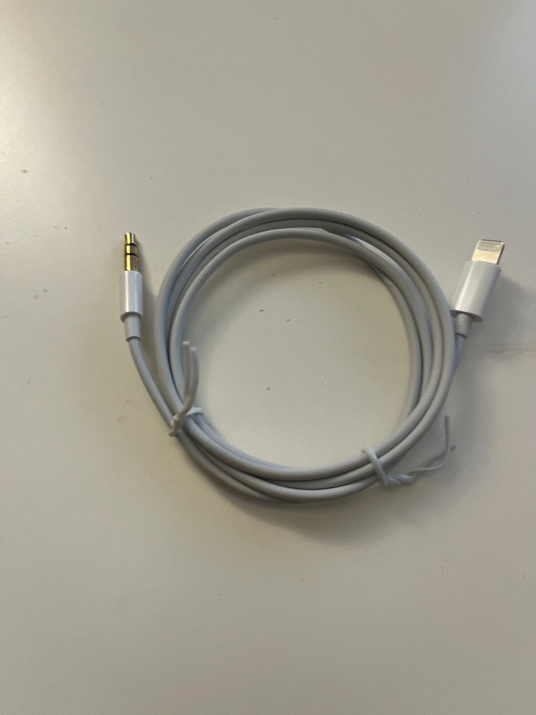 White lightning to headphone jack adapter. Great for listening to music and making calls through headphones.