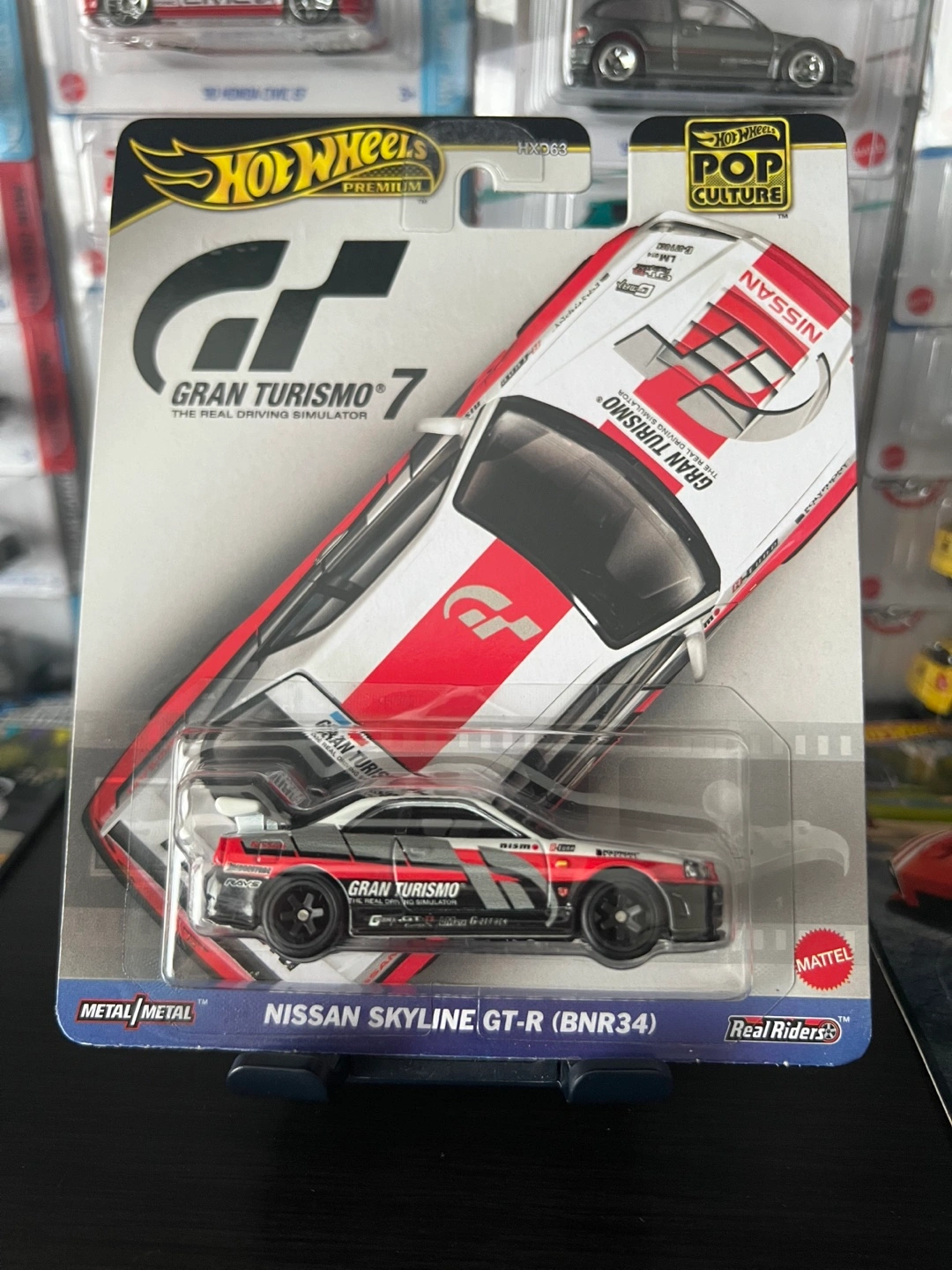 Hot Wheels Premium diecast car. Nissan Skyline GT-R (BNR34) Gran Turismo 7. Real Riders series.