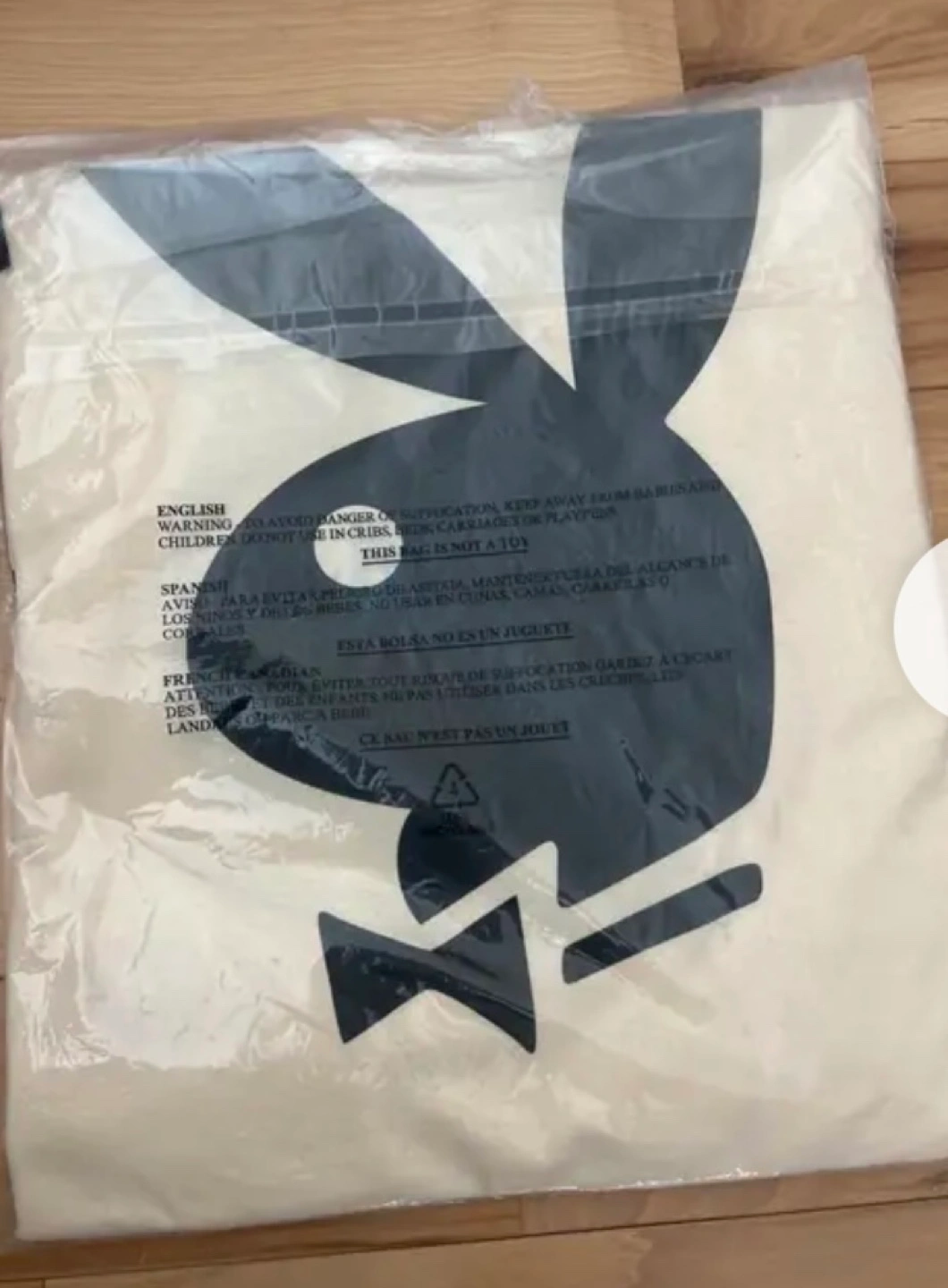 Cream colored t-shirt with black Playboy bunny and Homme size M