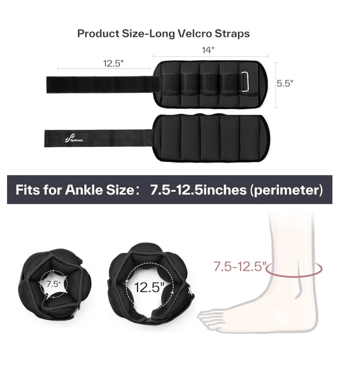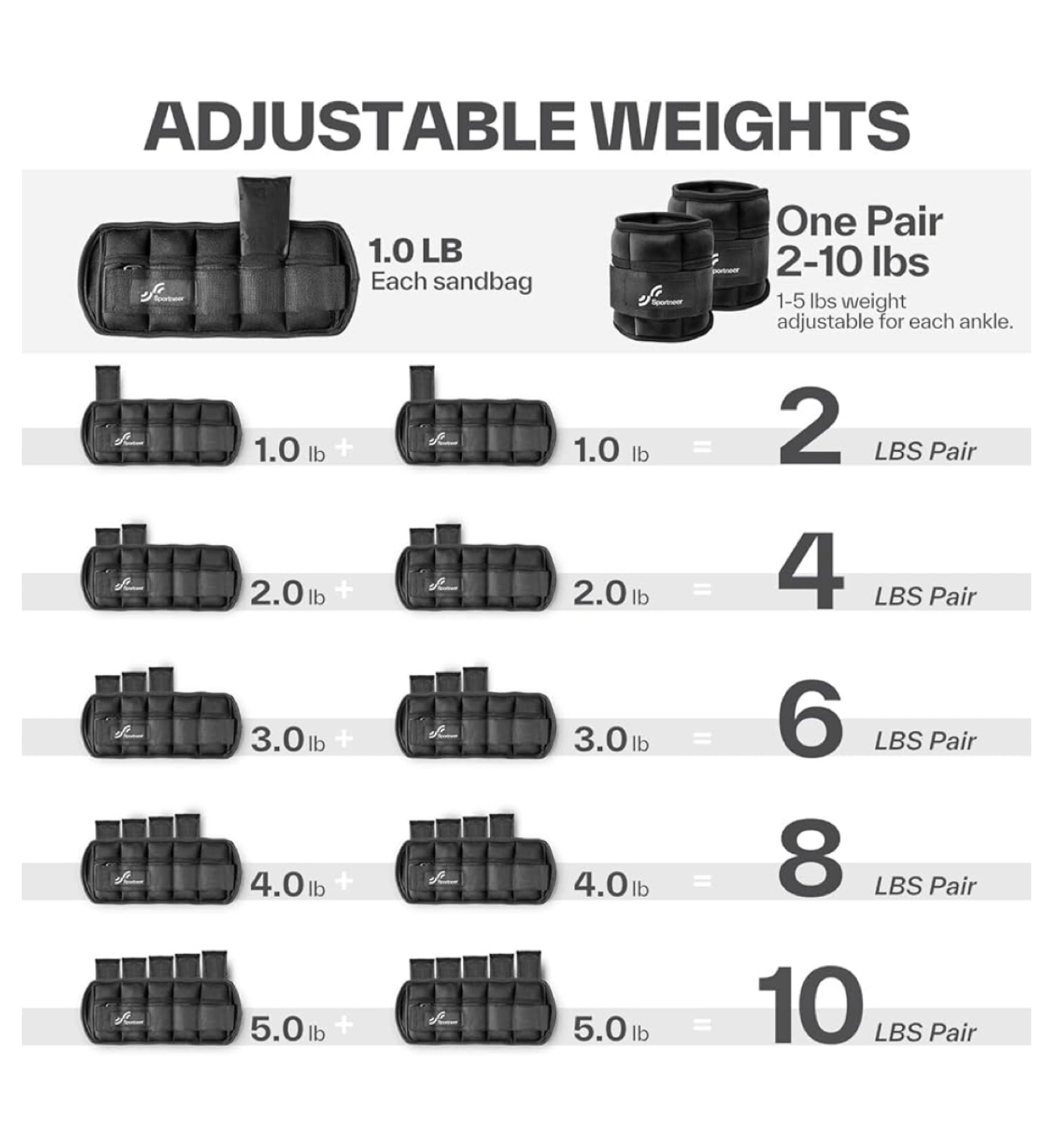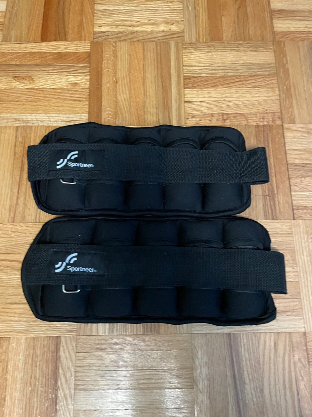 Pair of adjustable ankle weights. Each weight is adjustable from 1 to 5 pounds. Maximum weight per ankle is 5 pounds. (10lbs pair) Original price $41 + tax.
