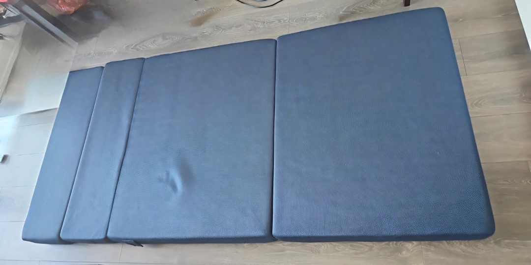 Tri fold memory foam mattress, always used with topper, can be folded as sofa, very comfortable, no wear and tear, selling because moving out
