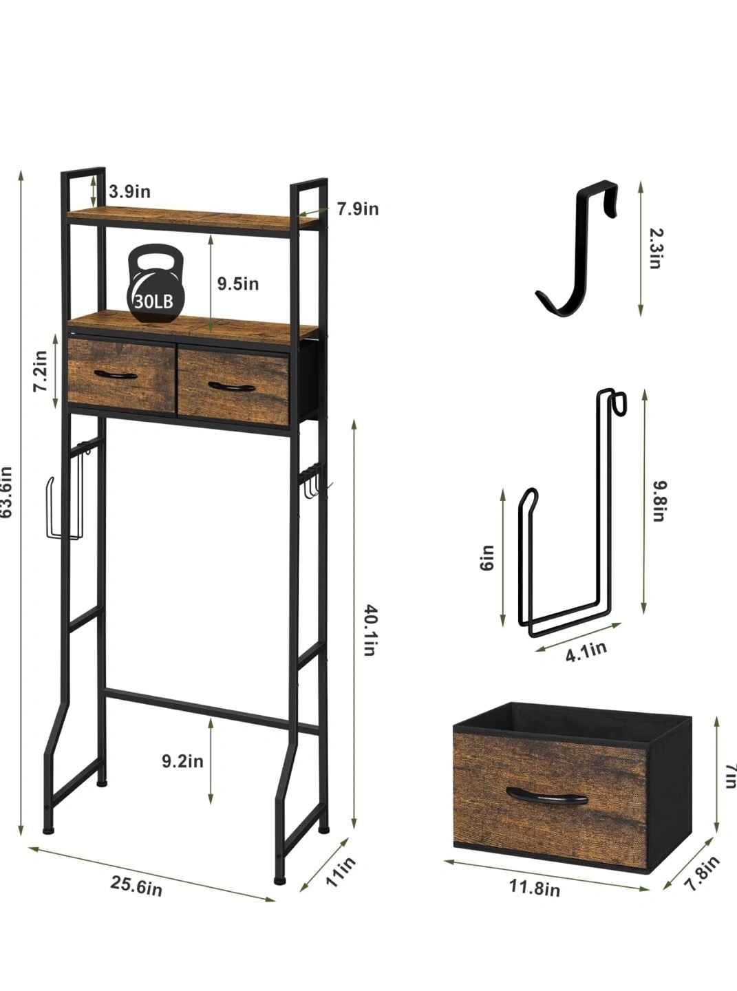 Rustic Metal Over Toilet Storage Rack with Drawers